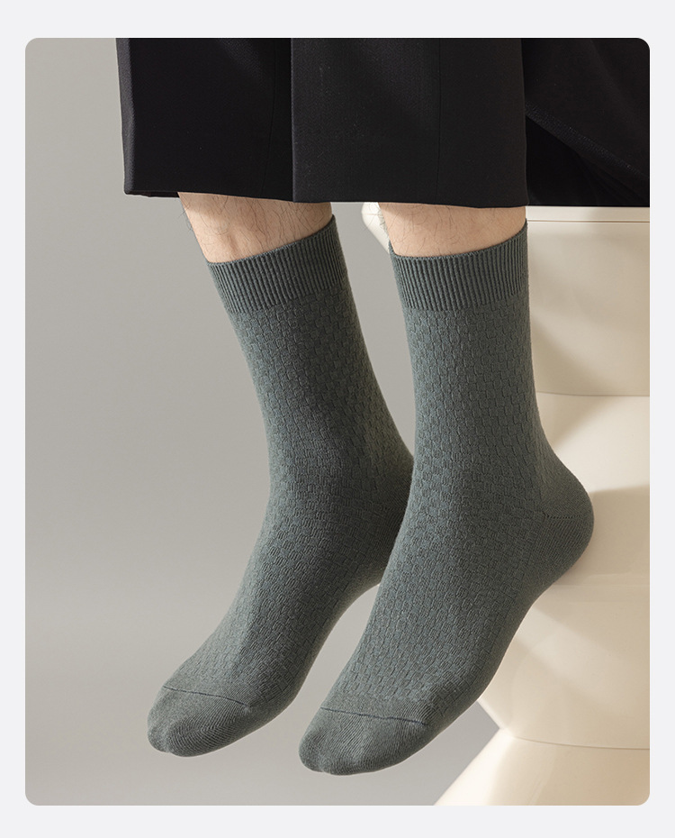 45g 중간 튜브 양말 남성 탈취제 땀 흡수성 가을 및 겨울 비즈니스 양말 남성 항균 따뜻한 단색면 양말 남성 양말 도매스토어 가기
