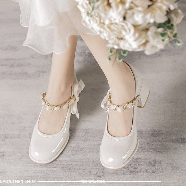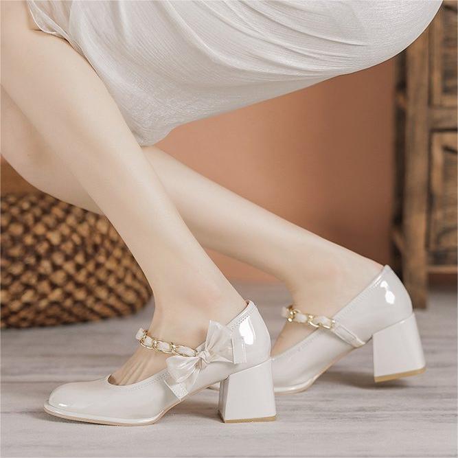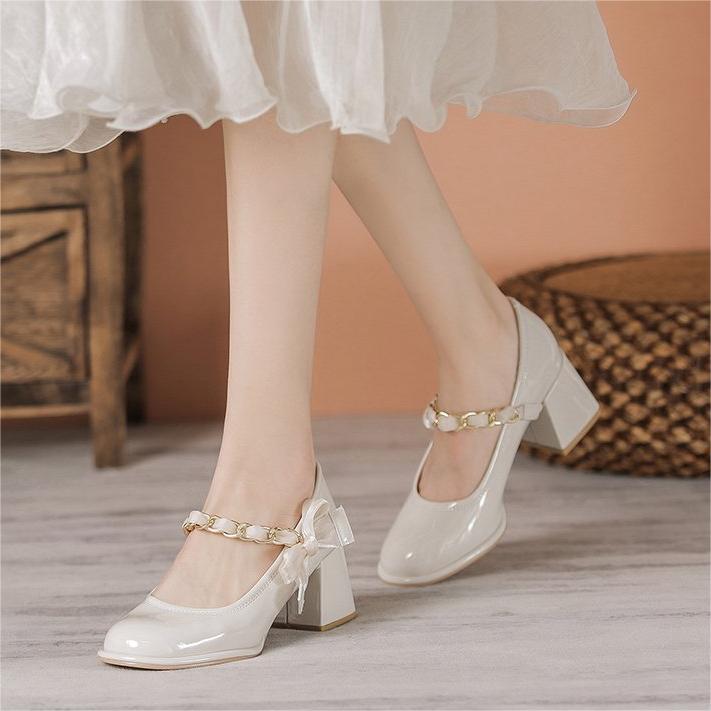 메리 제인 여성 신발 2024 새로운 봄과 가을 영국 스타일 청키 힐 하이힐 프랑스 플랫폼 우아한 작은 가죽 신발스토어 가기