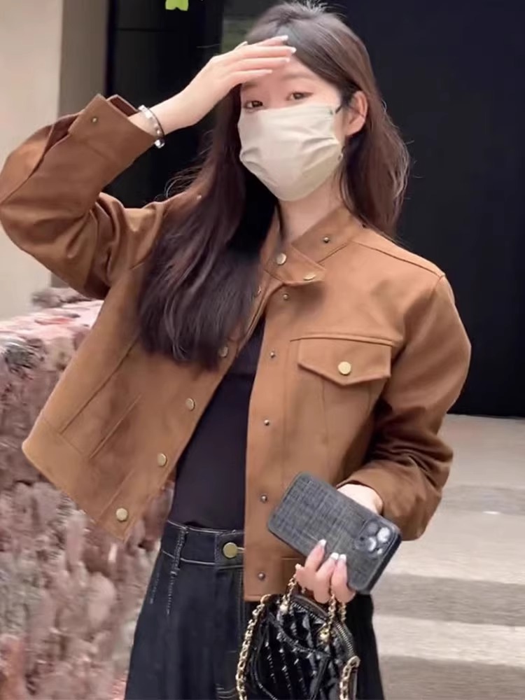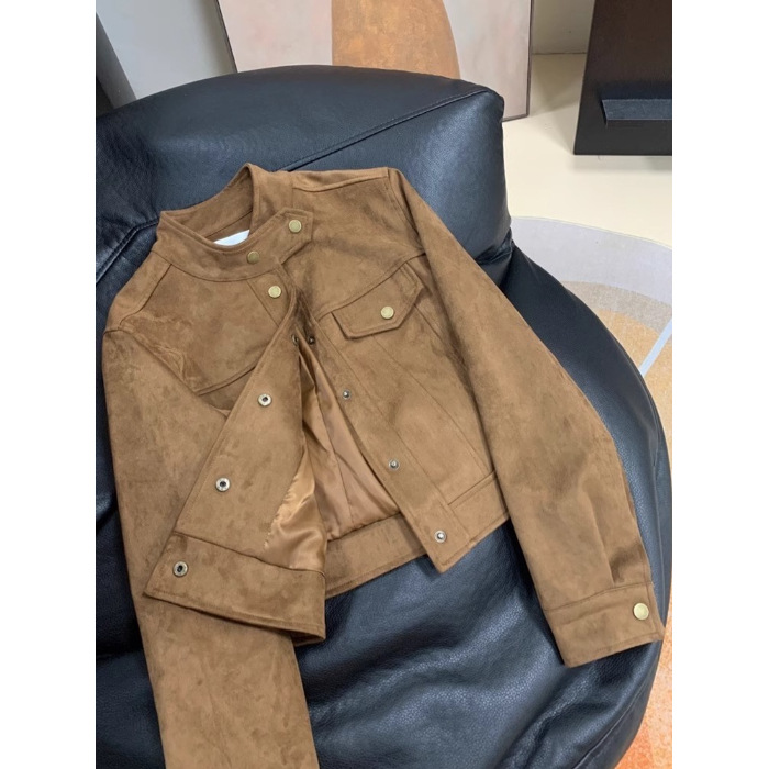 Maillard 다크 브라운 재킷 양털 가죽 재킷 여성의 봄과 가을 디자인 센스 틈새 짧은 바이커 재킷스토어 가기
