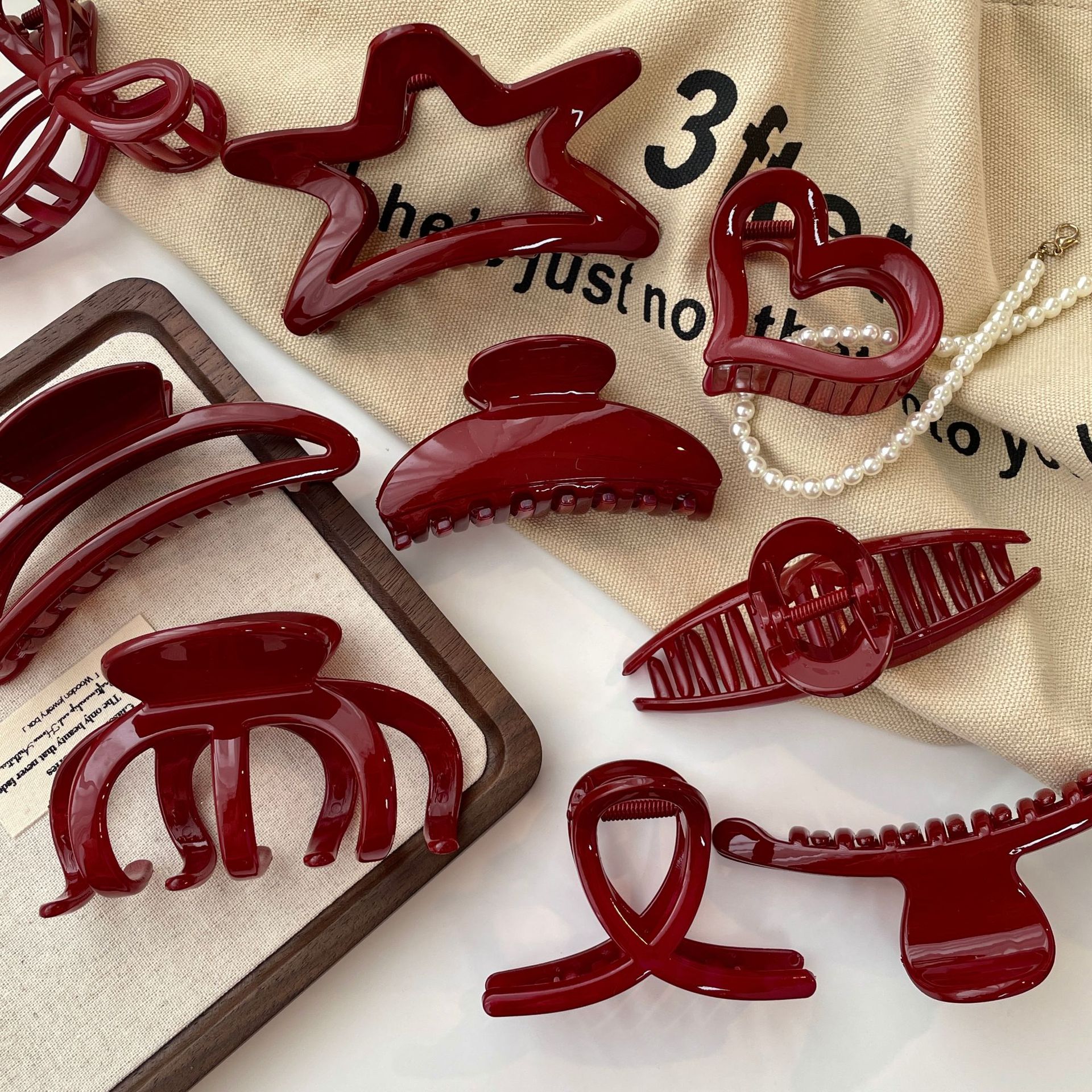 2024 새로운 하이 엔드 가을과 겨울 그랩 클립 레드 설날 머리띠 머리 상어 클립 새해 머리 머리옷 여성스토어 가기