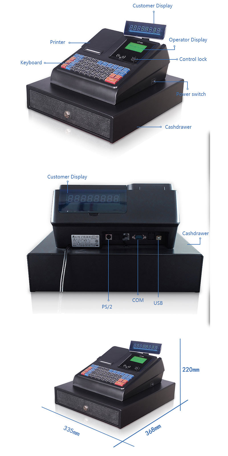 현금 등록기 Longfei LF100/500 통합 전자 현금 등록 영어 전통 판 편의는 케이터링 우유 차 가게를 만듭니다