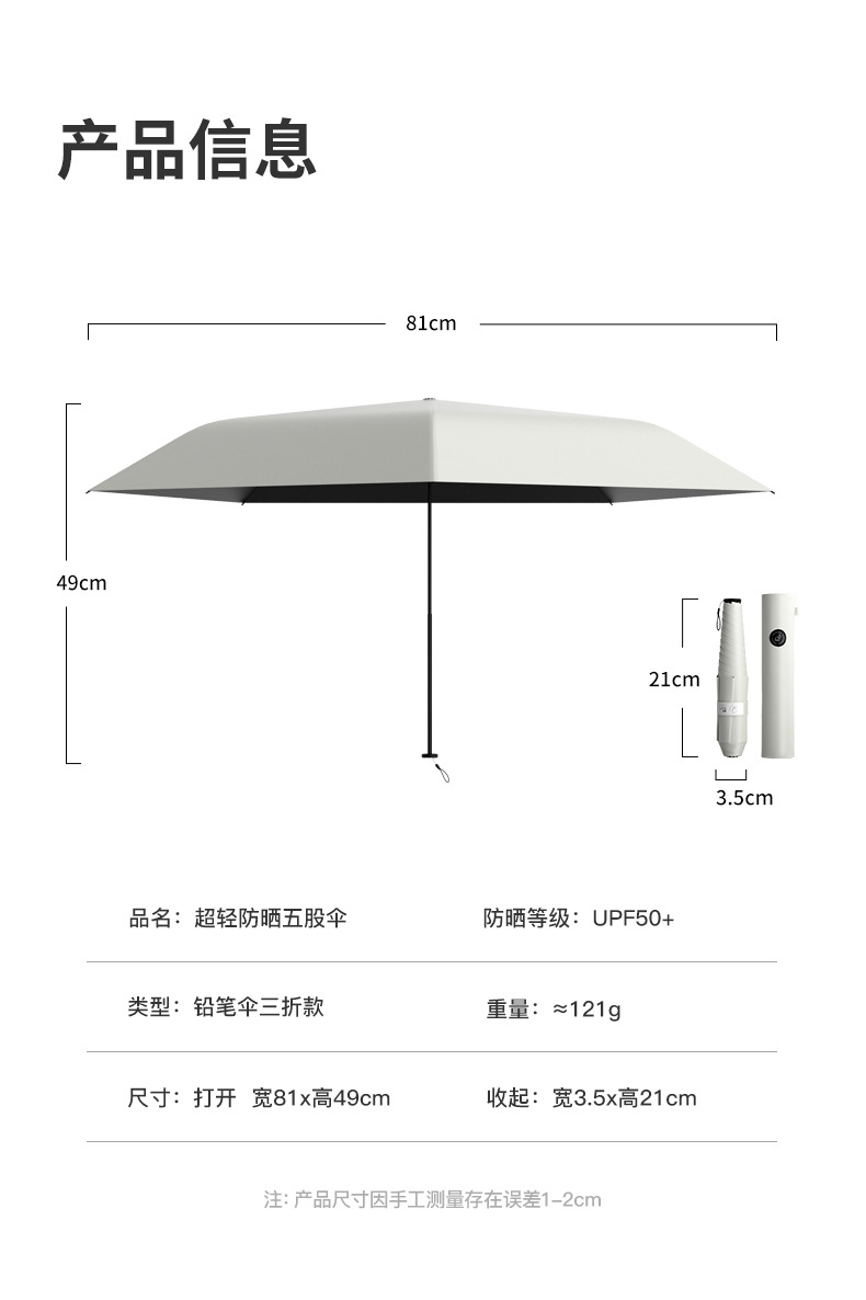 유휴 코끼리 울트라 라이트 연필 우산 3 배 검은 고무 태양 보호 UV 보호 야외 차양 우산 upf50 일본 울트라 라이트 우산