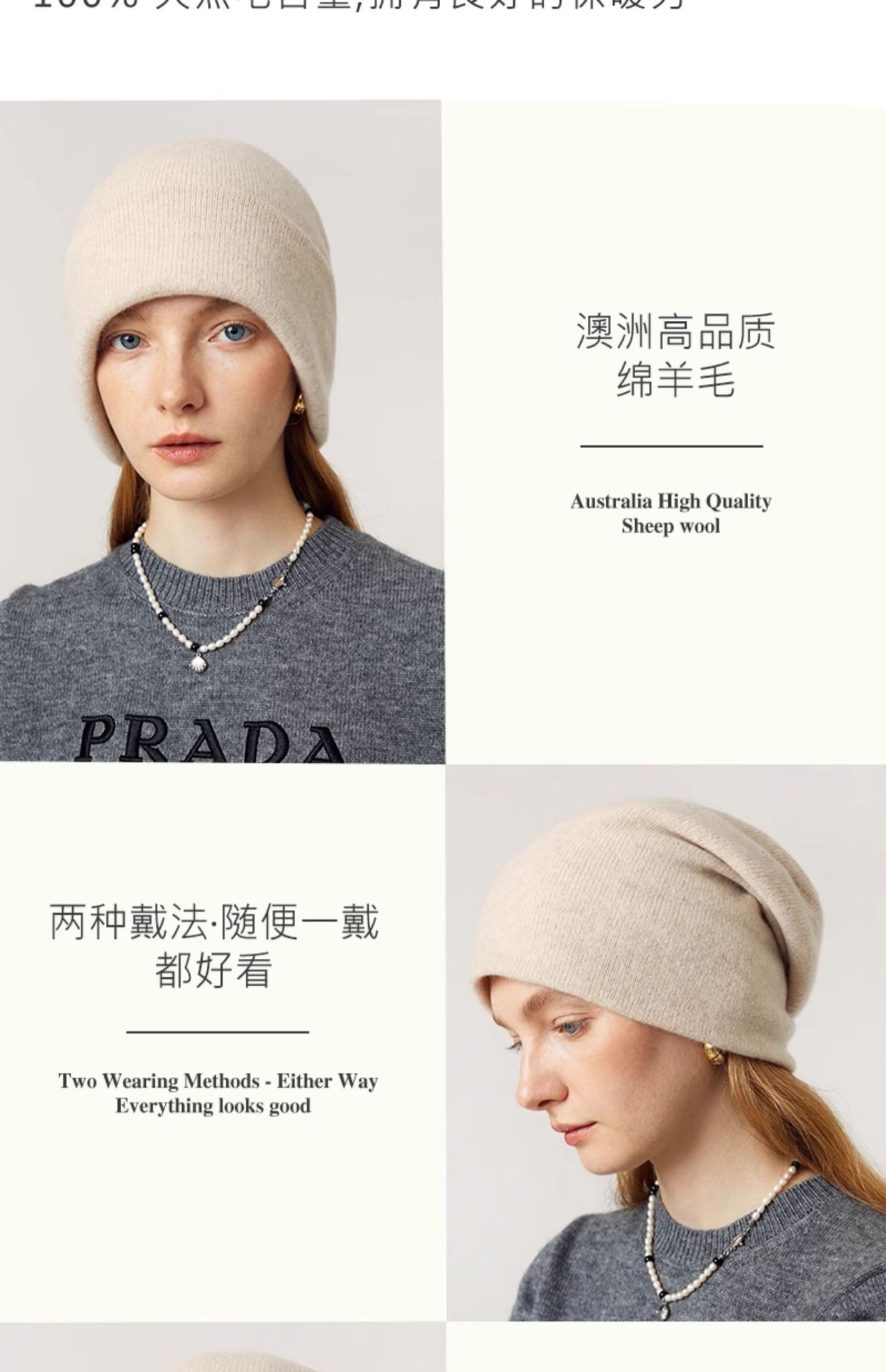 Ins 퓨어 울 원활한 이중 목적 니트 모자 여성의 가을 및 겨울 남성용 따뜻한 울 힙 콜드 햇스토어 가기