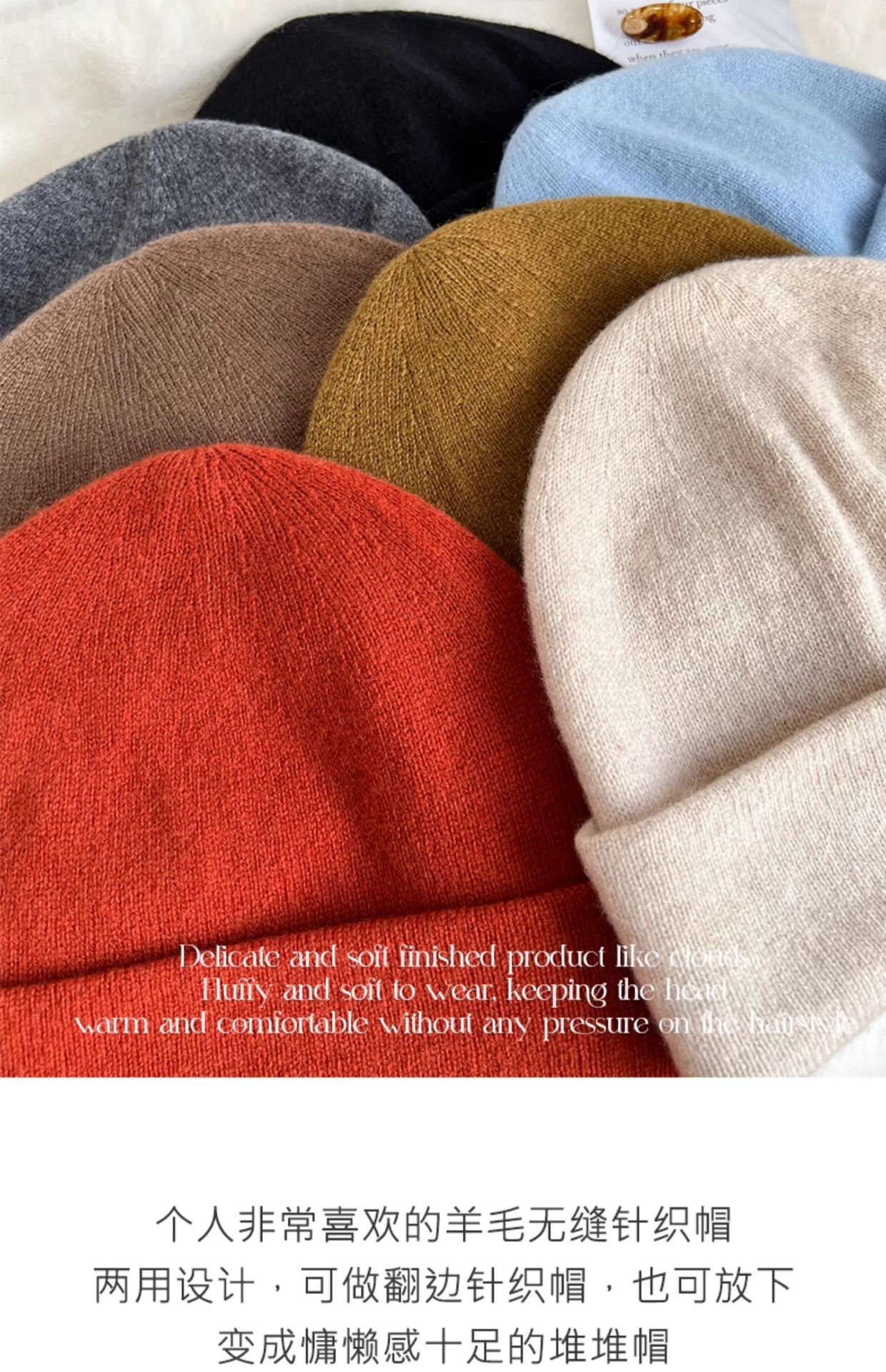 Ins 퓨어 울 원활한 이중 목적 니트 모자 여성의 가을 및 겨울 남성용 따뜻한 울 힙 콜드 햇