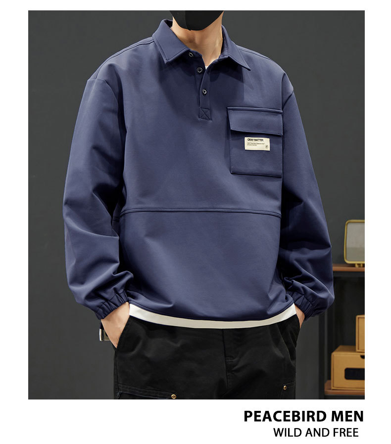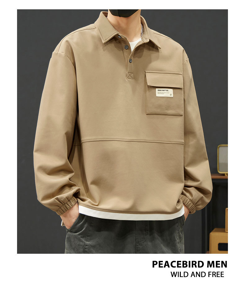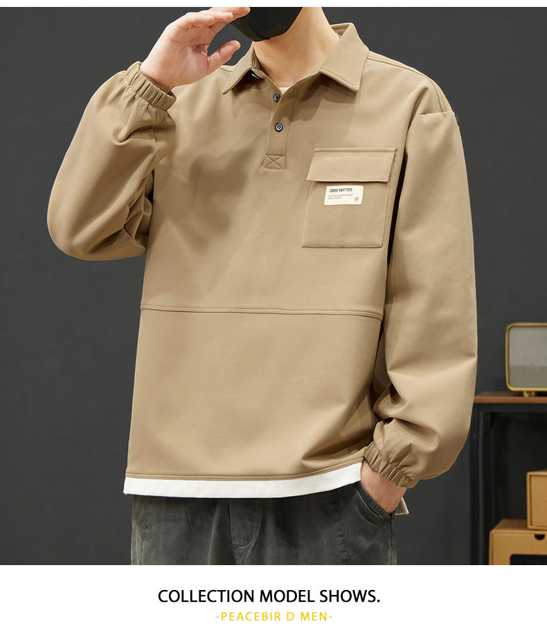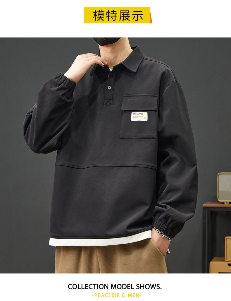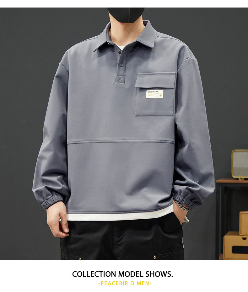 남성용 옷깃 스웨터 남성용 지방 플러스 느슨한 지방 남성 봄과 가을 새로운 패션 브랜드 캐주얼 긴 소매 탑