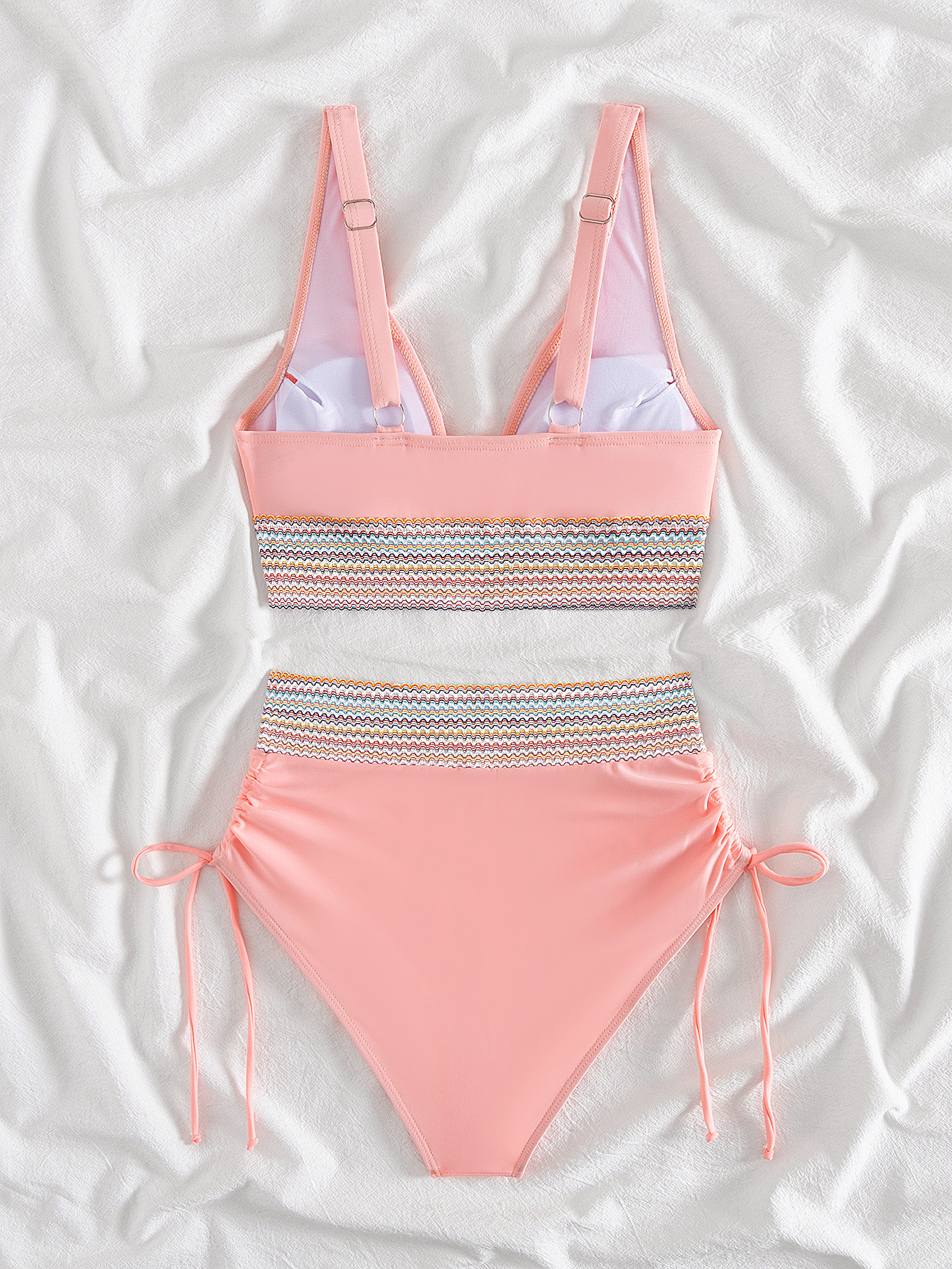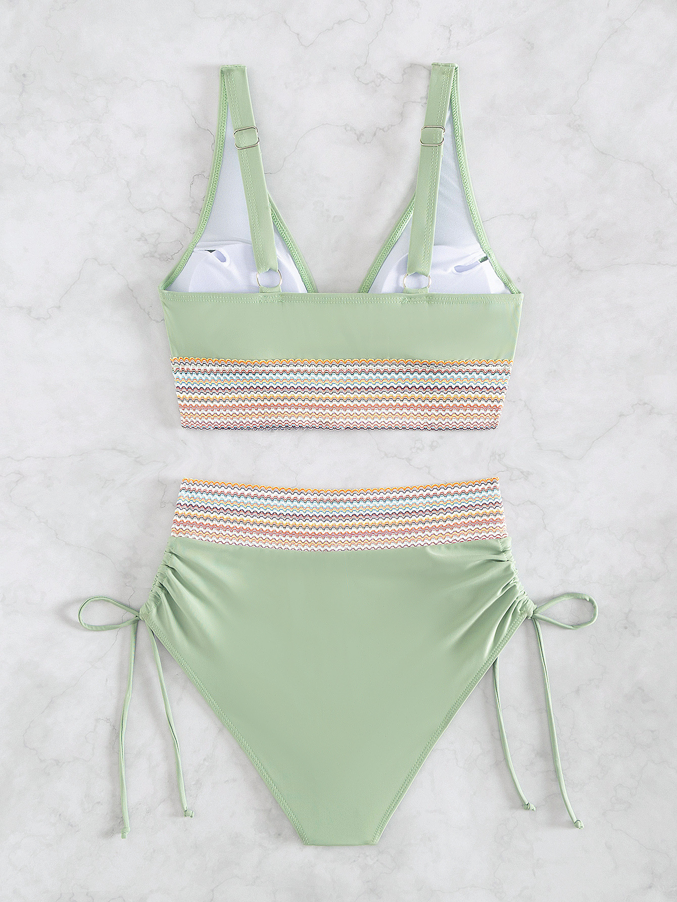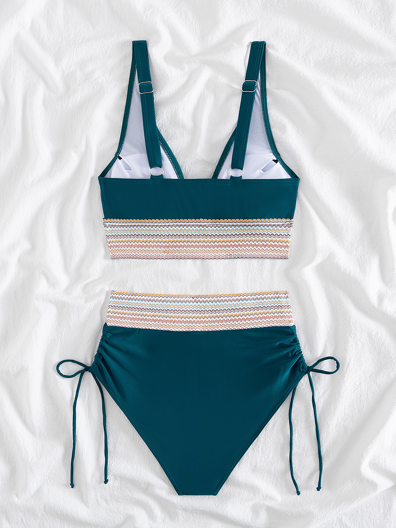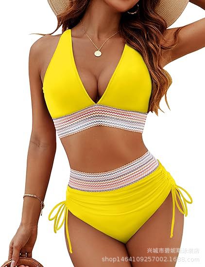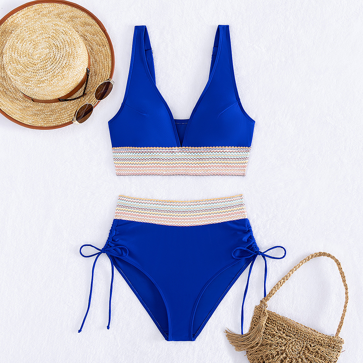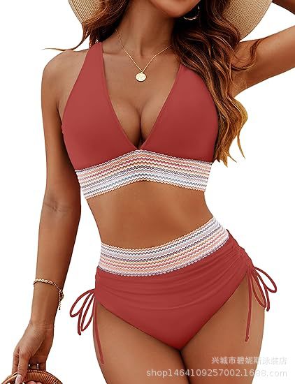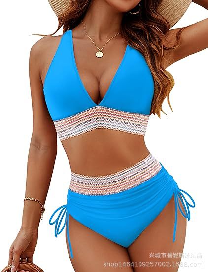 유럽과 미국의 대외 무역 수영복 여성 스플릿 비키니 높은 허리 슬리밍 섹시한 레이스 업 목 타이트 아마존 폭발스토어 가기