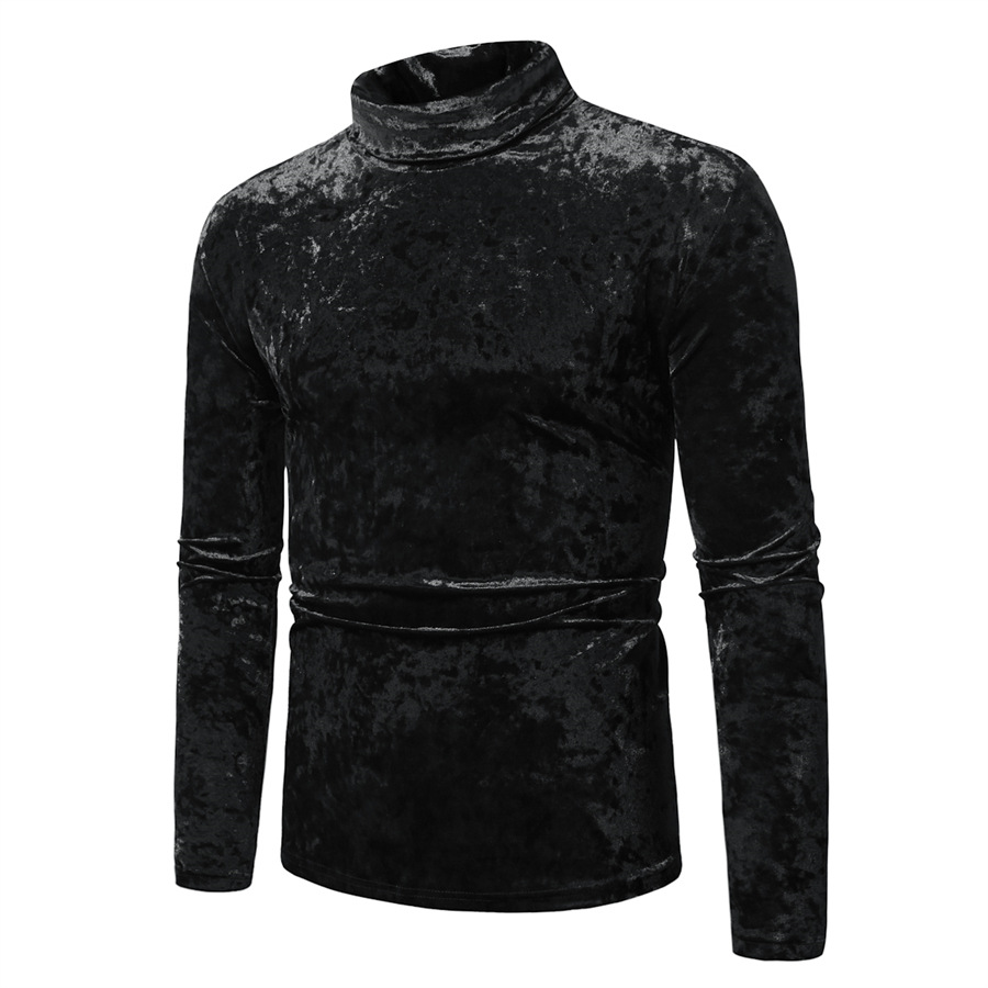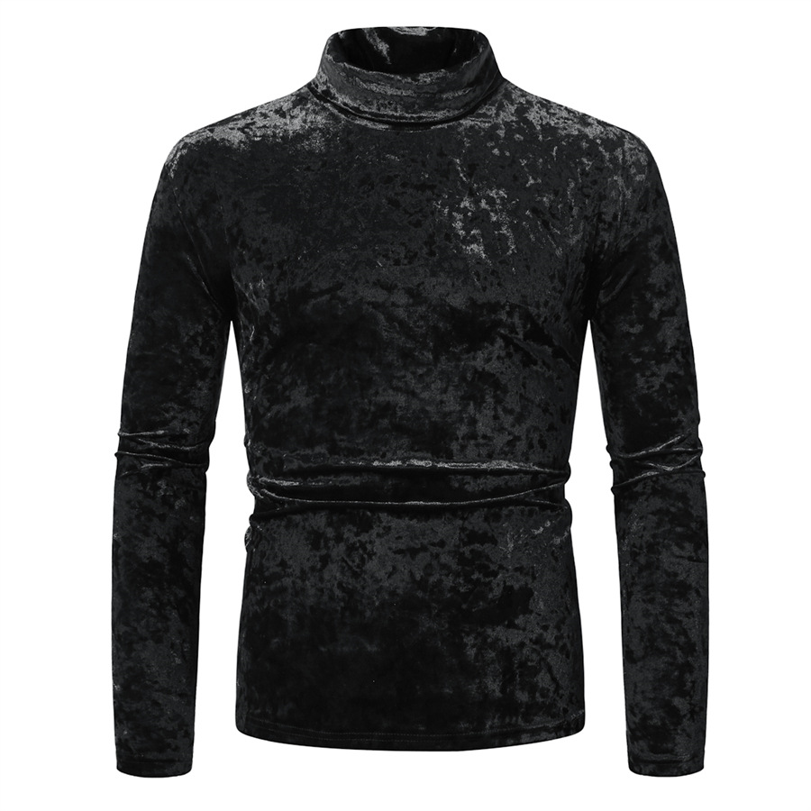 국경 간 대외 무역 유럽 크기 2024 가을과 겨울 반 높은 칼라 영국베이스 셔츠 골드 벨벳 스티칭 남성 긴팔 티셔츠 남성스토어 가기