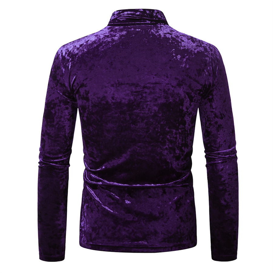 국경 간 대외 무역 유럽 크기 2024 가을과 겨울 반 높은 칼라 영국베이스 셔츠 골드 벨벳 스티칭 남성 긴팔 티셔츠 남성