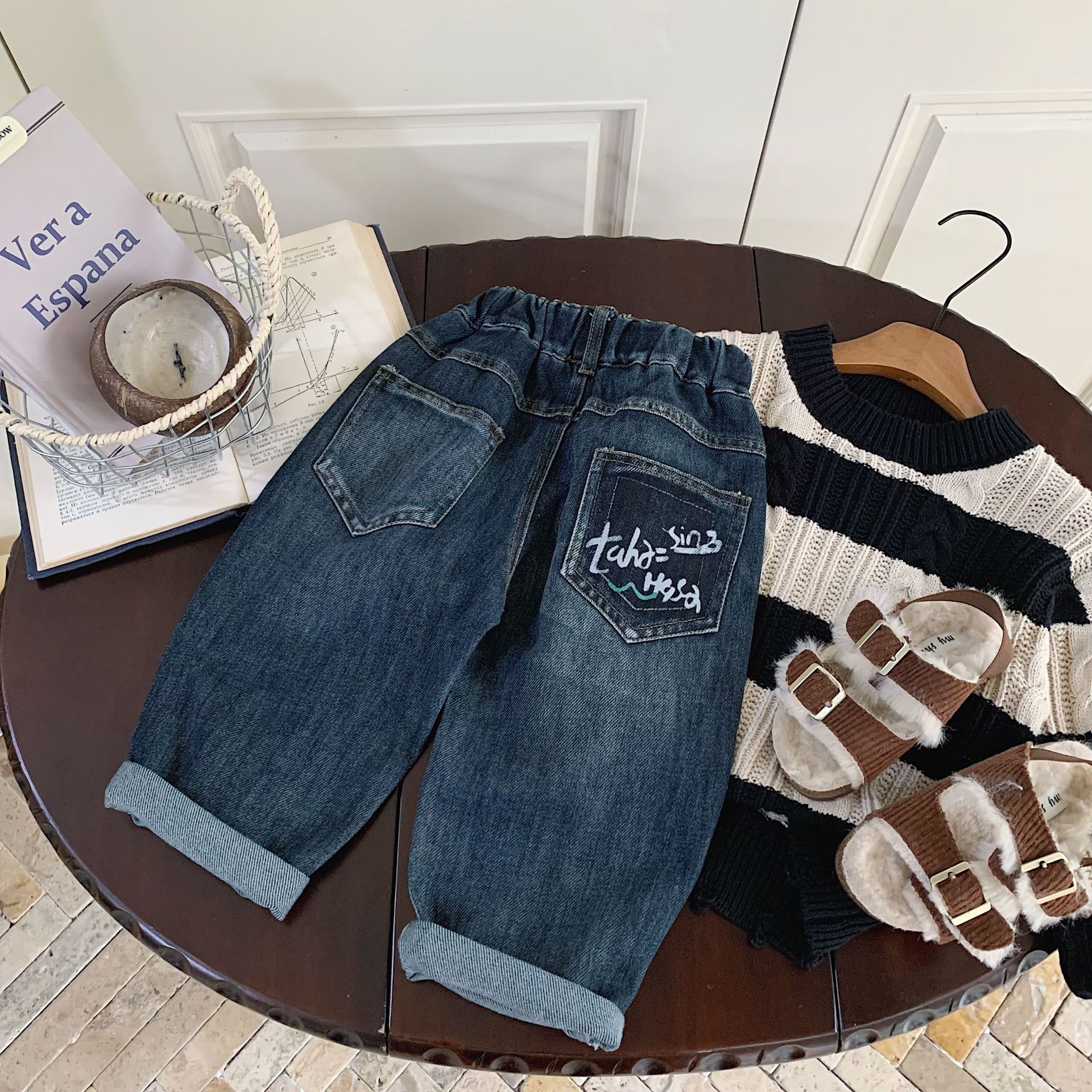 아동 청바지 Bangcheng 2025 가을 소년 한국 캐주얼 바지 유행 새로운 포켓 프린트 바지 G0387