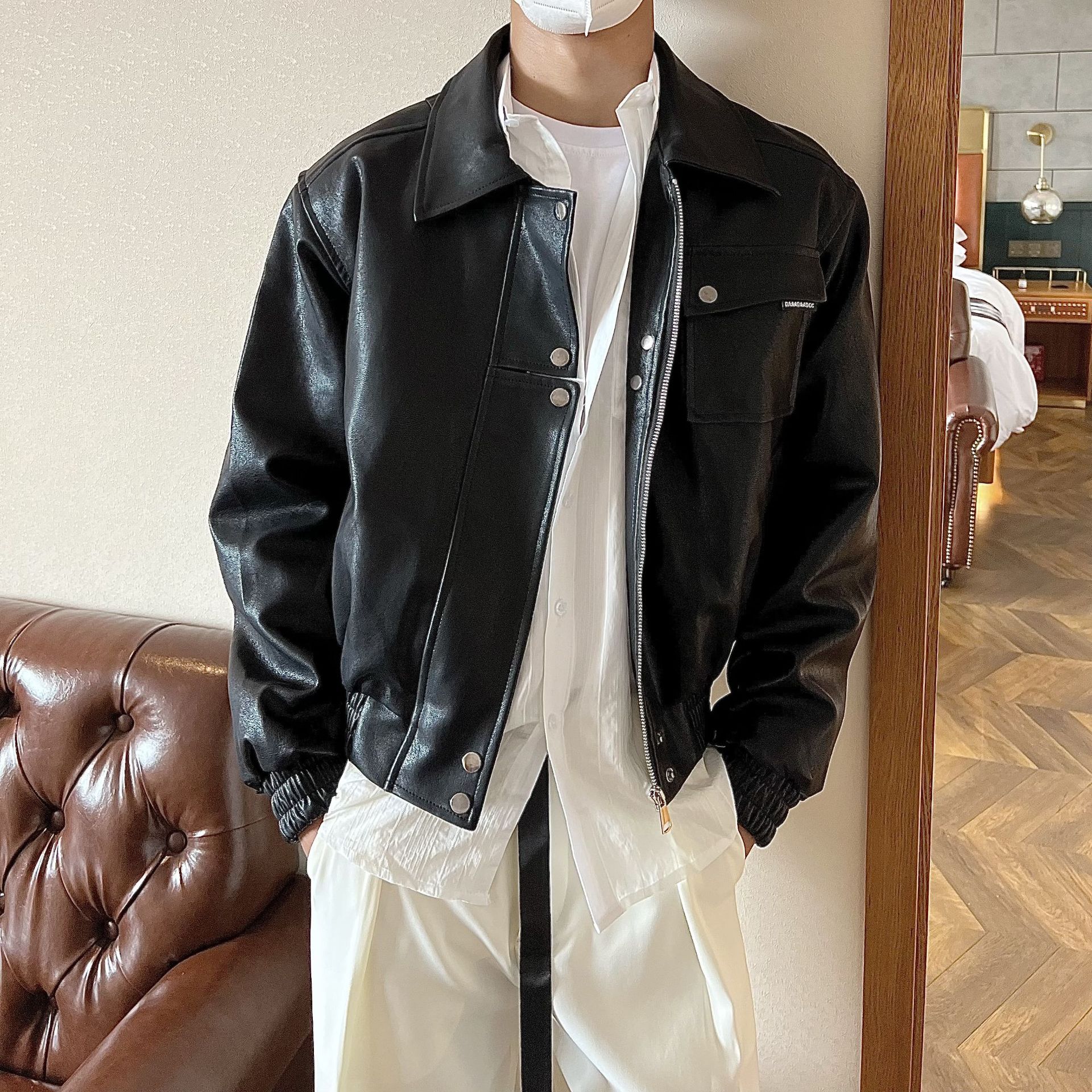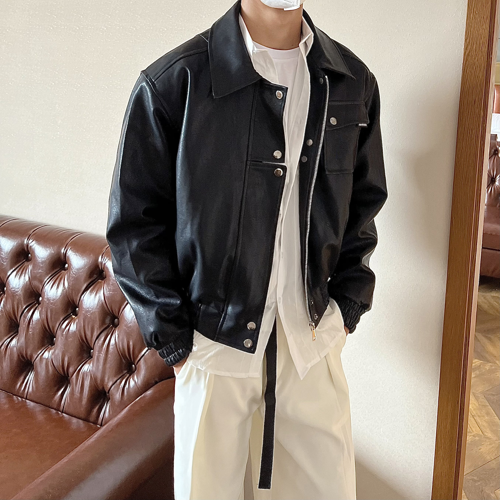 Pi Shuai 홍콩 스타일 하이 엔드 PU 가죽 자켓 남성 봄과 가을 복고풍 잘 생긴 바이커 의류 캐주얼 재킷 트렌디