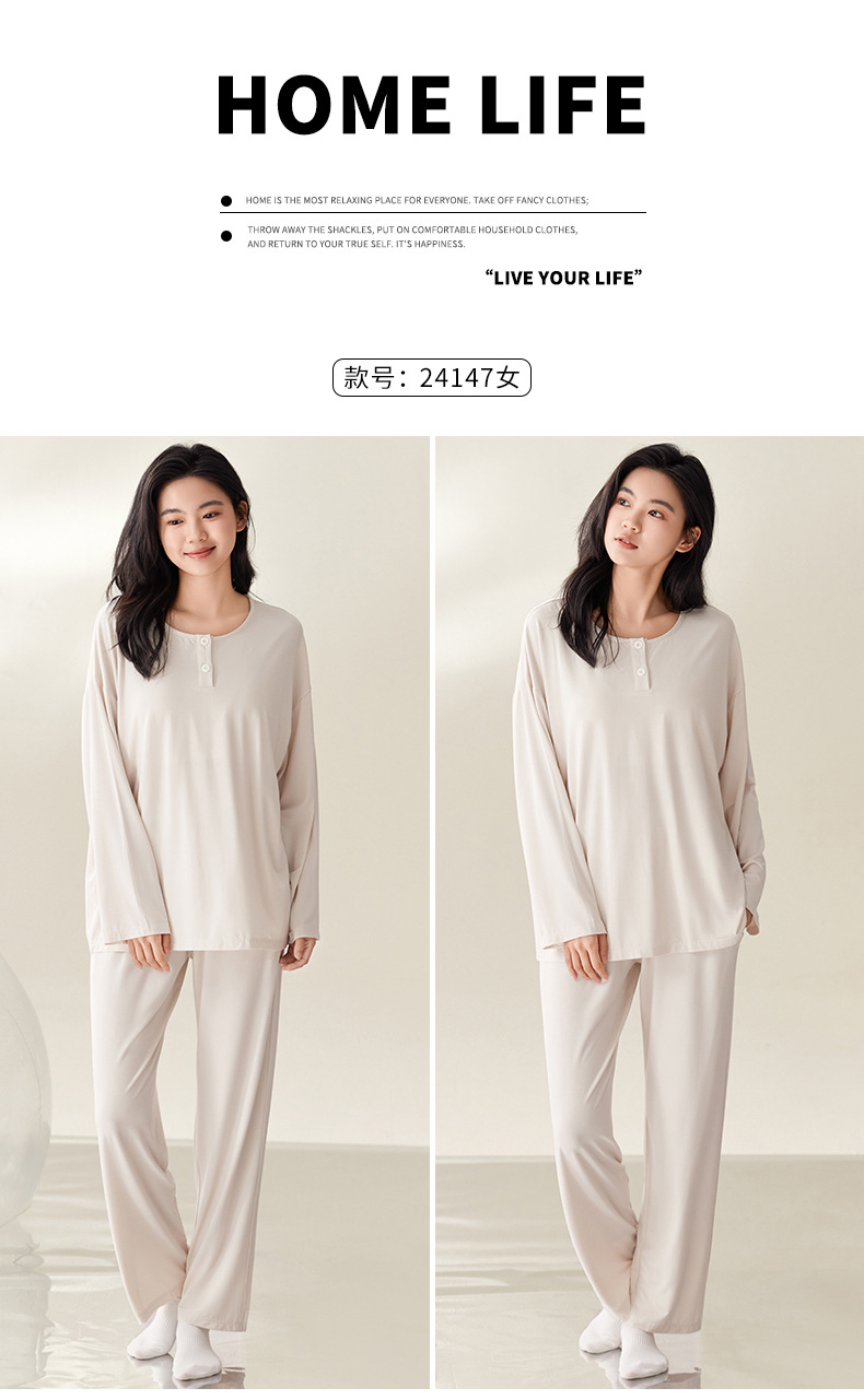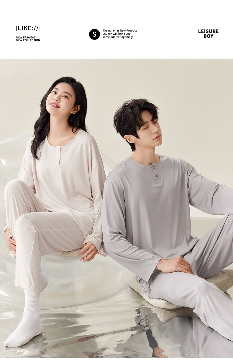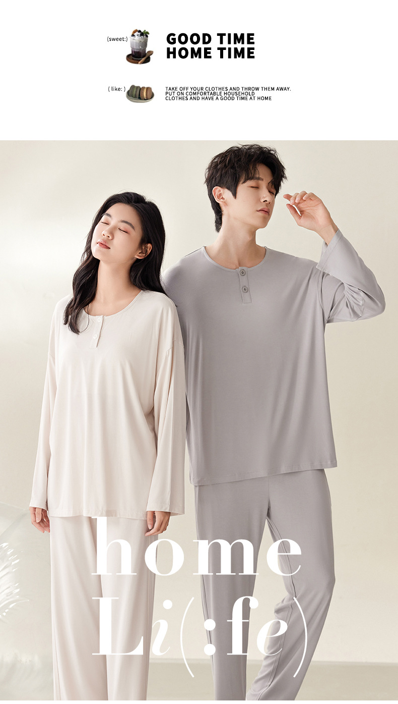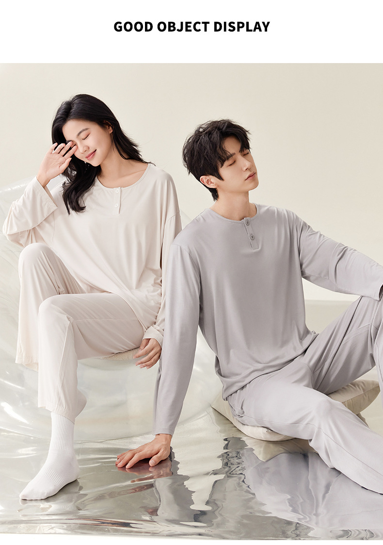 커플 잠옷 여성의 봄과 가을 모달 코튼 벨트 가슴 패드 긴 소매 둥근 목 세트 느슨한 플러스 사이즈 남성 홈 옷스토어 가기