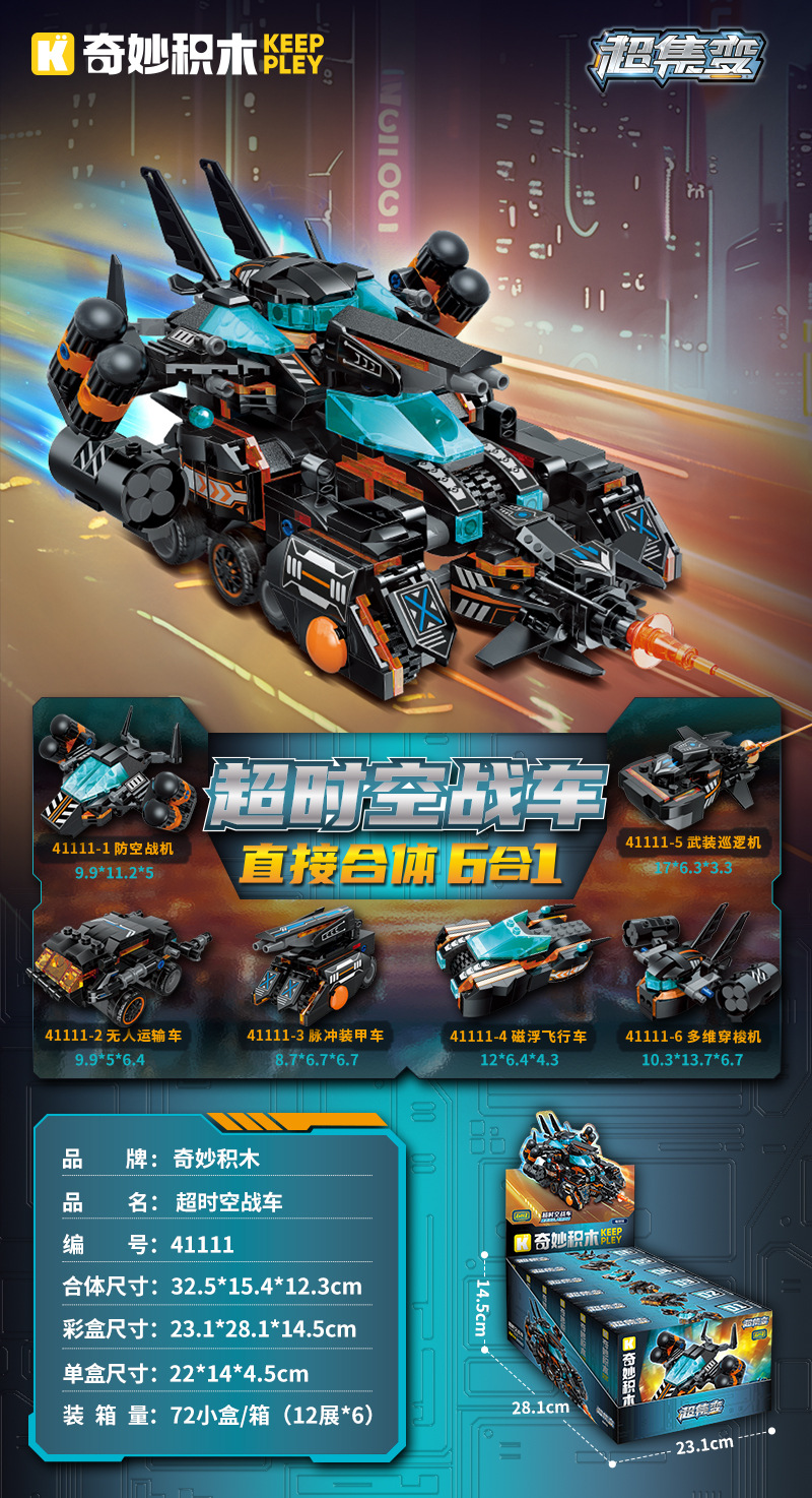 啓蒙 빌딩 블록 41111 초시공 차량 슈퍼 세트 6 합체 대공 전투기 수송 차량 소년 장난감 자동차스토어 가기