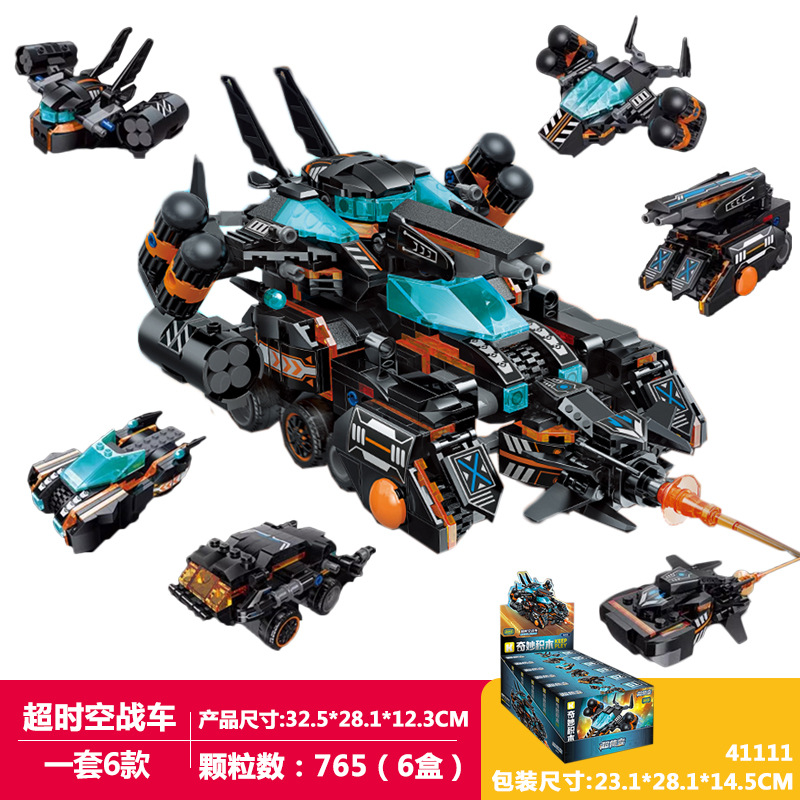 啓蒙 빌딩 블록 41111 초시공 차량 슈퍼 세트 6 합체 대공 전투기 수송 차량 소년 장난감 자동차