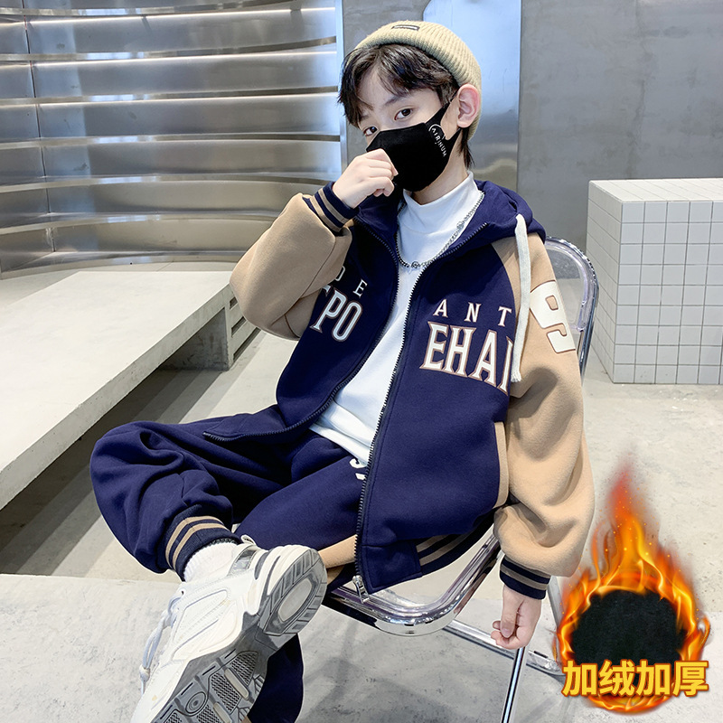 男童春秋款套装2023新款男孩童装大童运动洋气帅气加绒两件套
