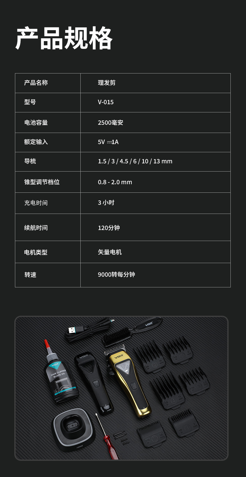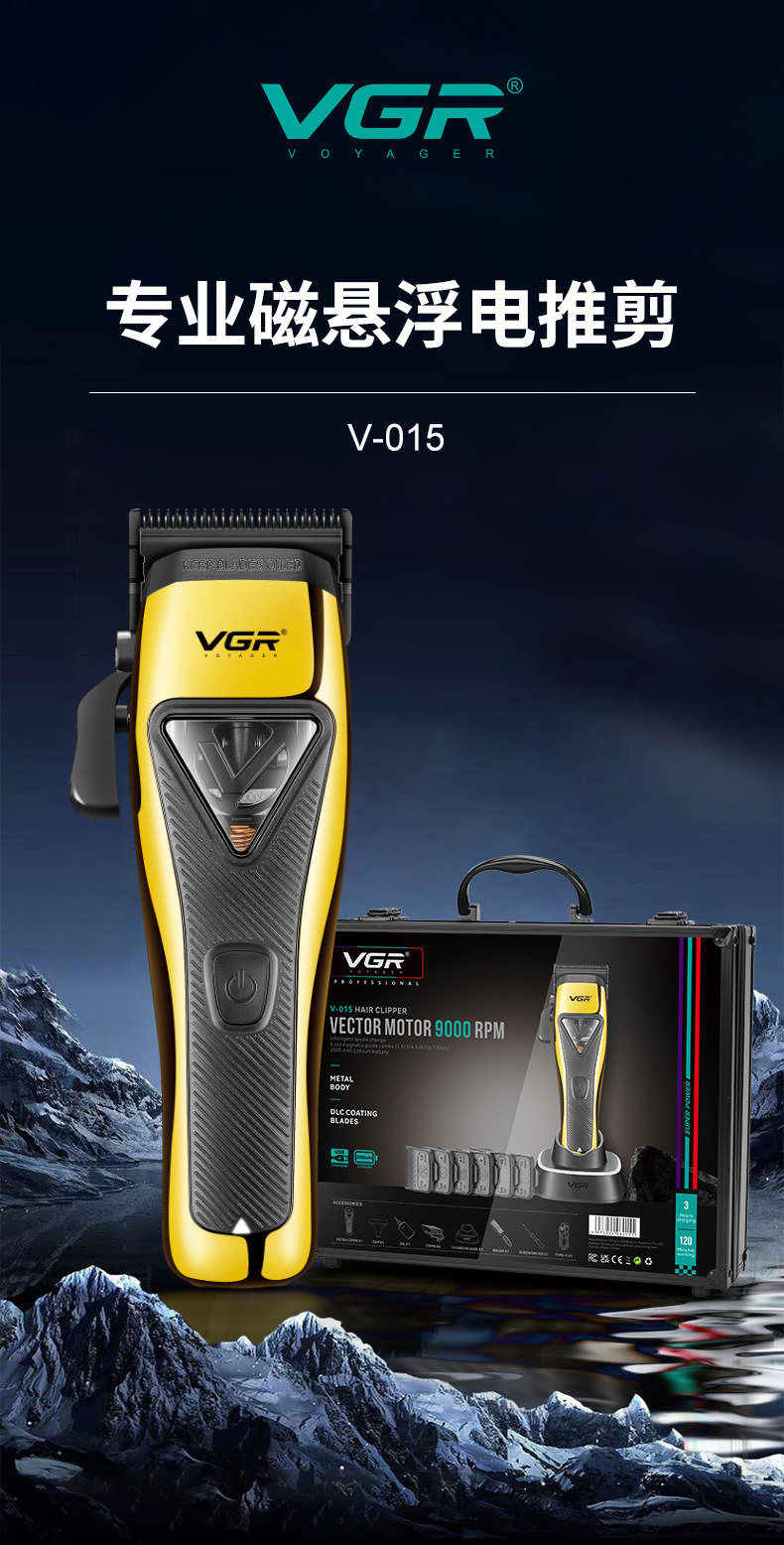 VGR 국경 새 스타일 헤어 클리퍼 전문 남성 헤어 살롱 베이스 충전 자기 부상 가정용 헤어 클리퍼 V-015