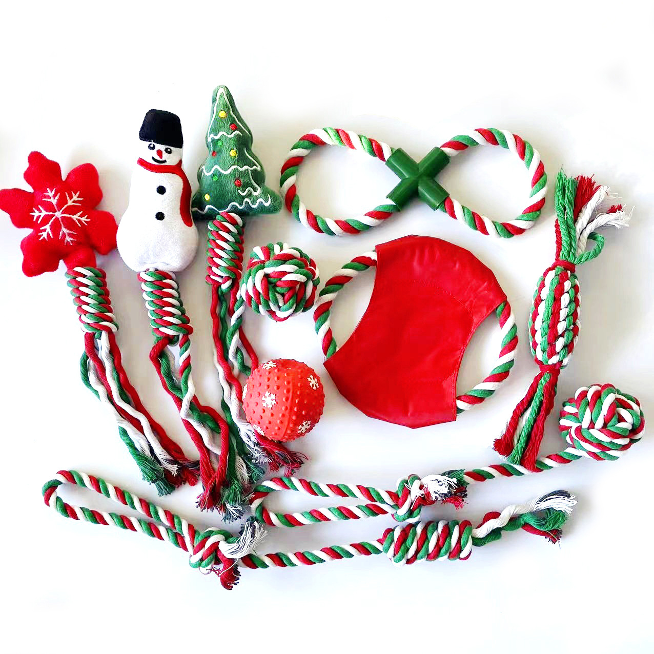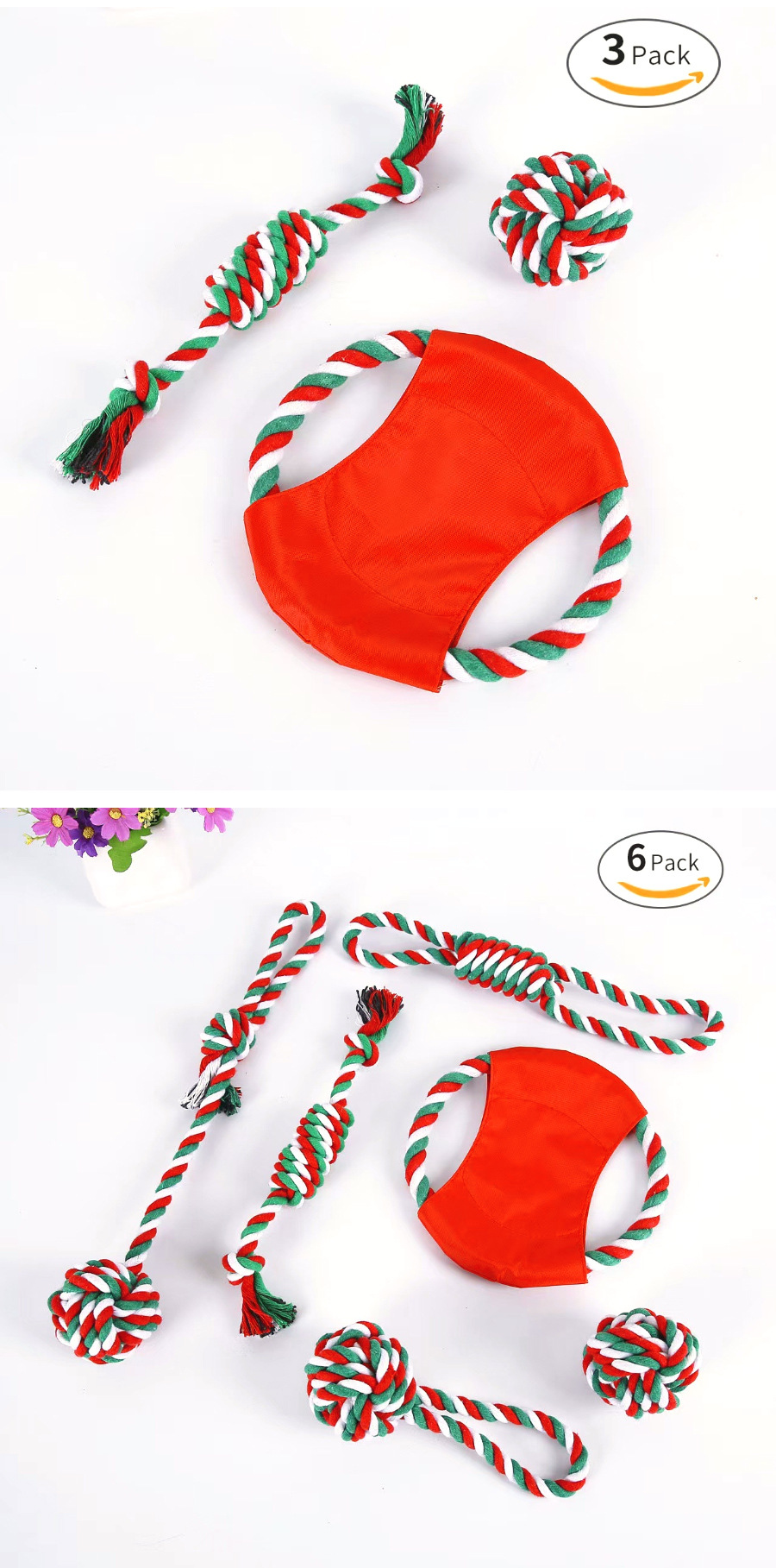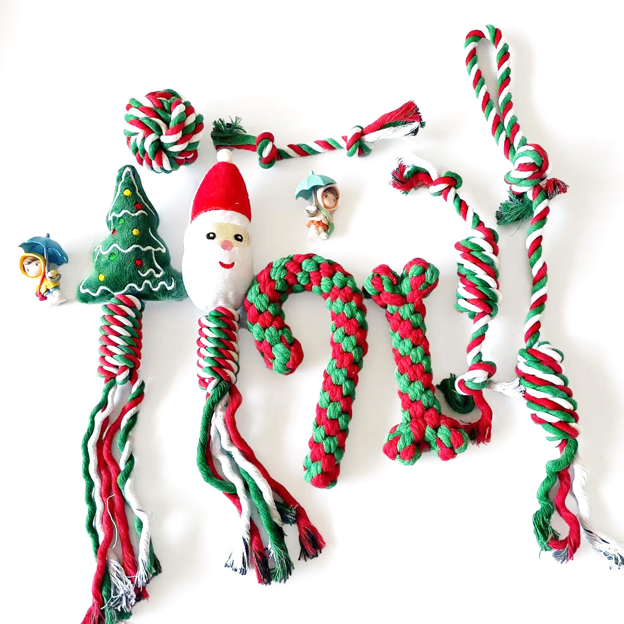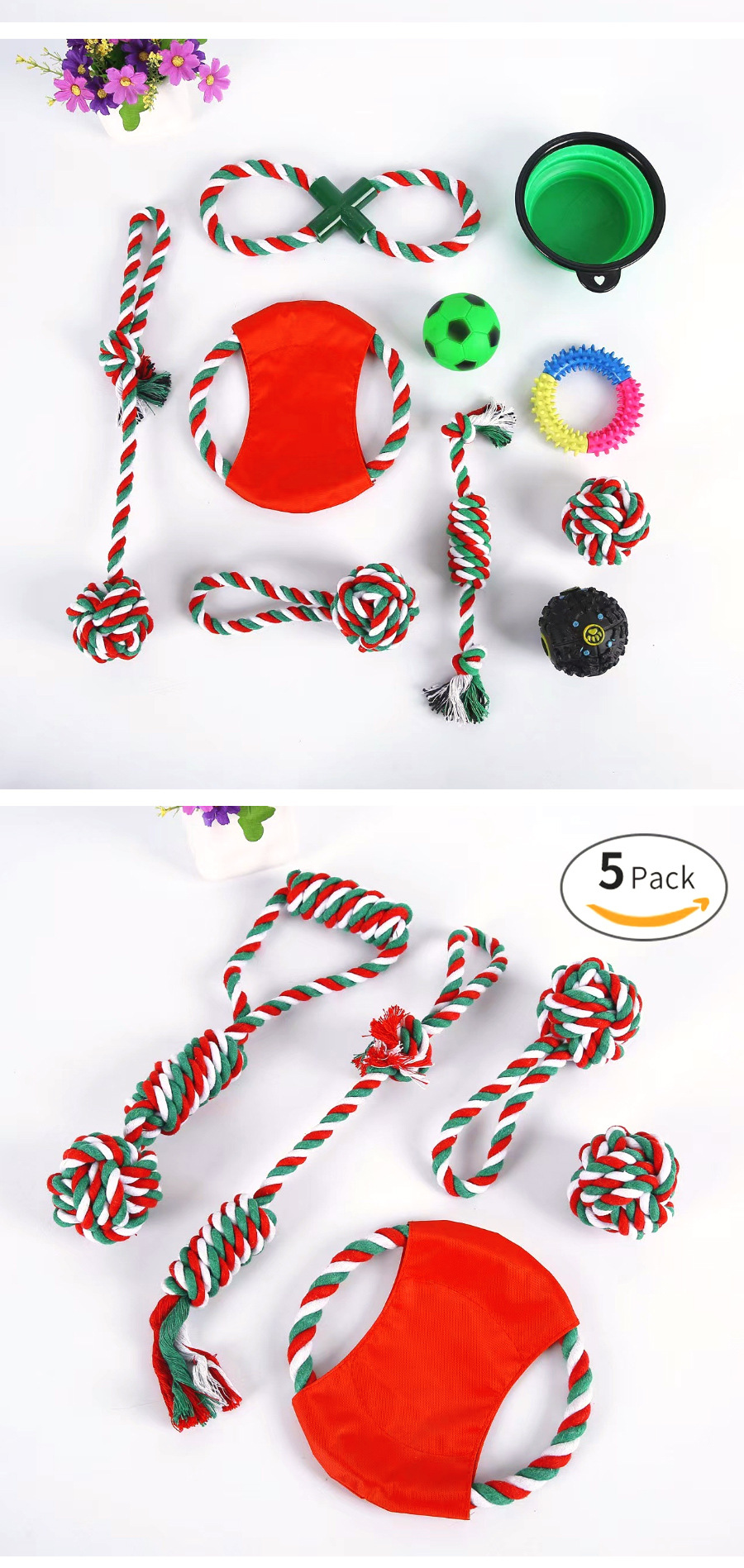 아마존 폭발 애완 동물 용품 개 면 로프 장난감 어금니 애완 동물 장난감 세트 크리스마스 개 장난감 선물