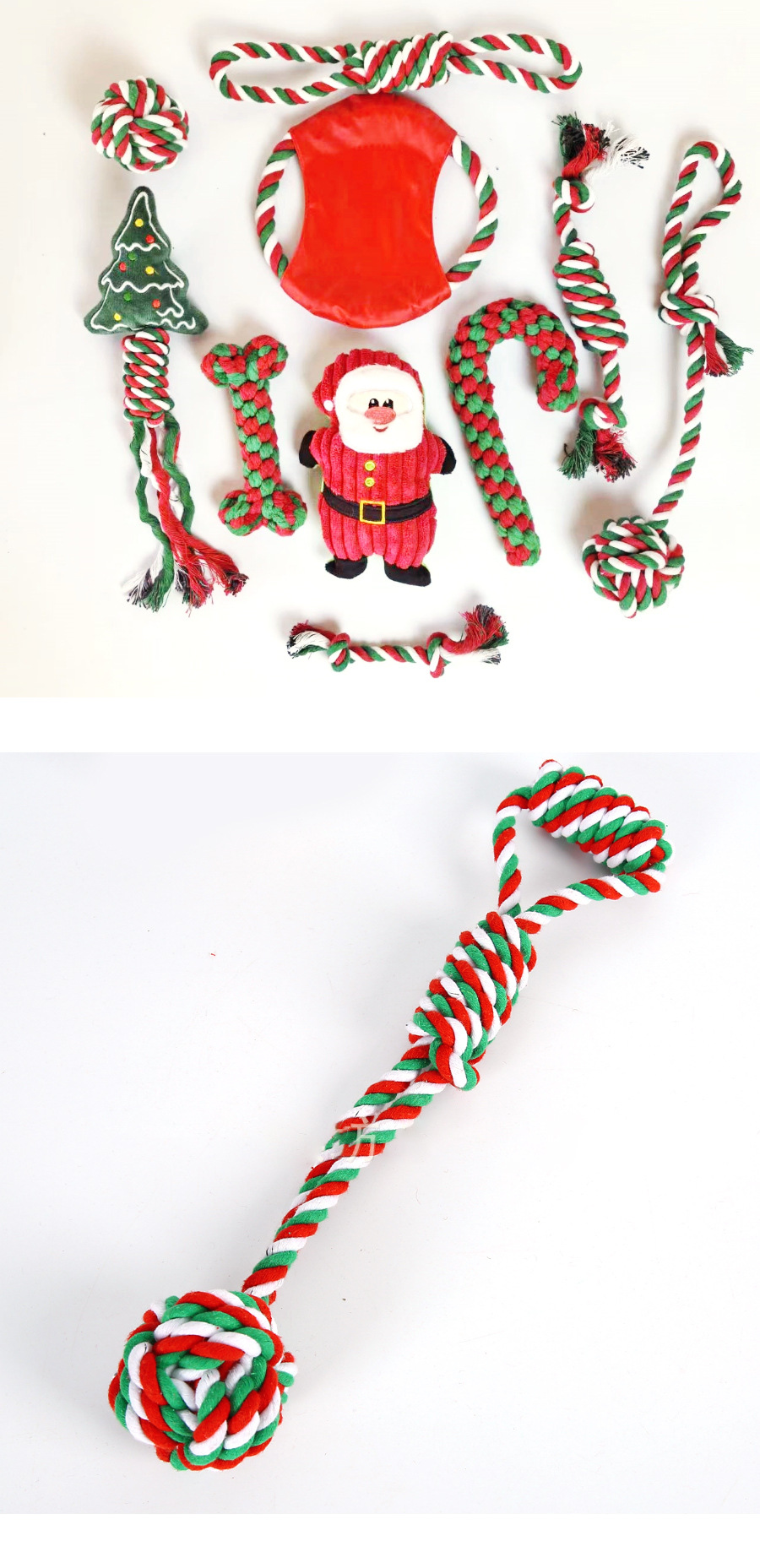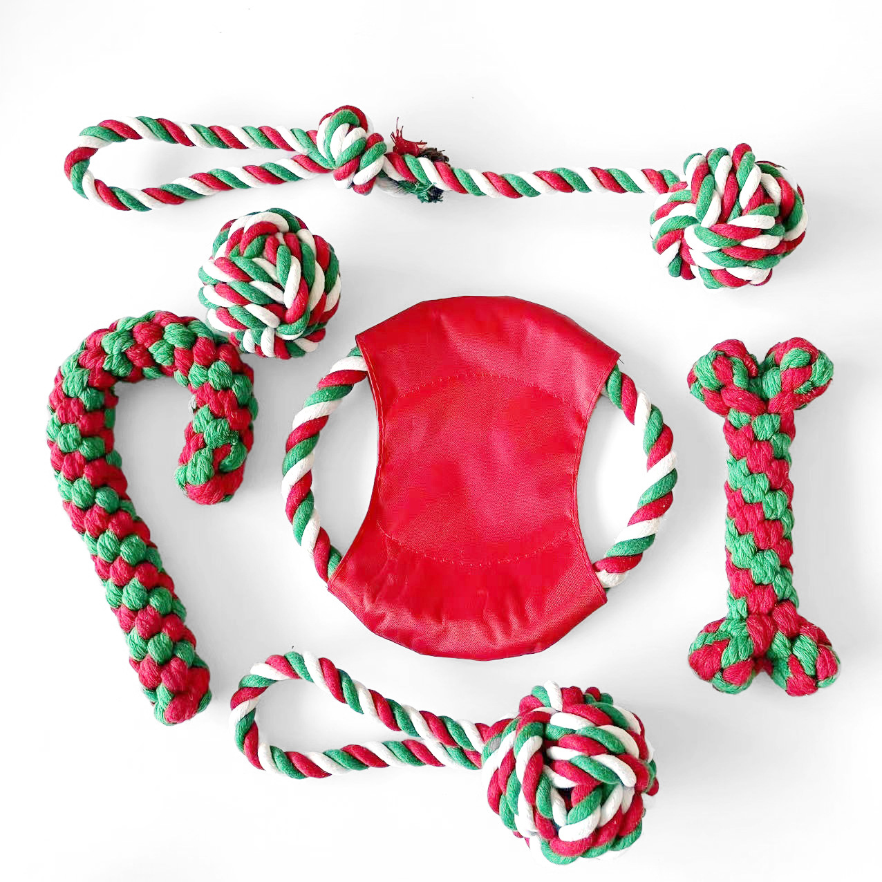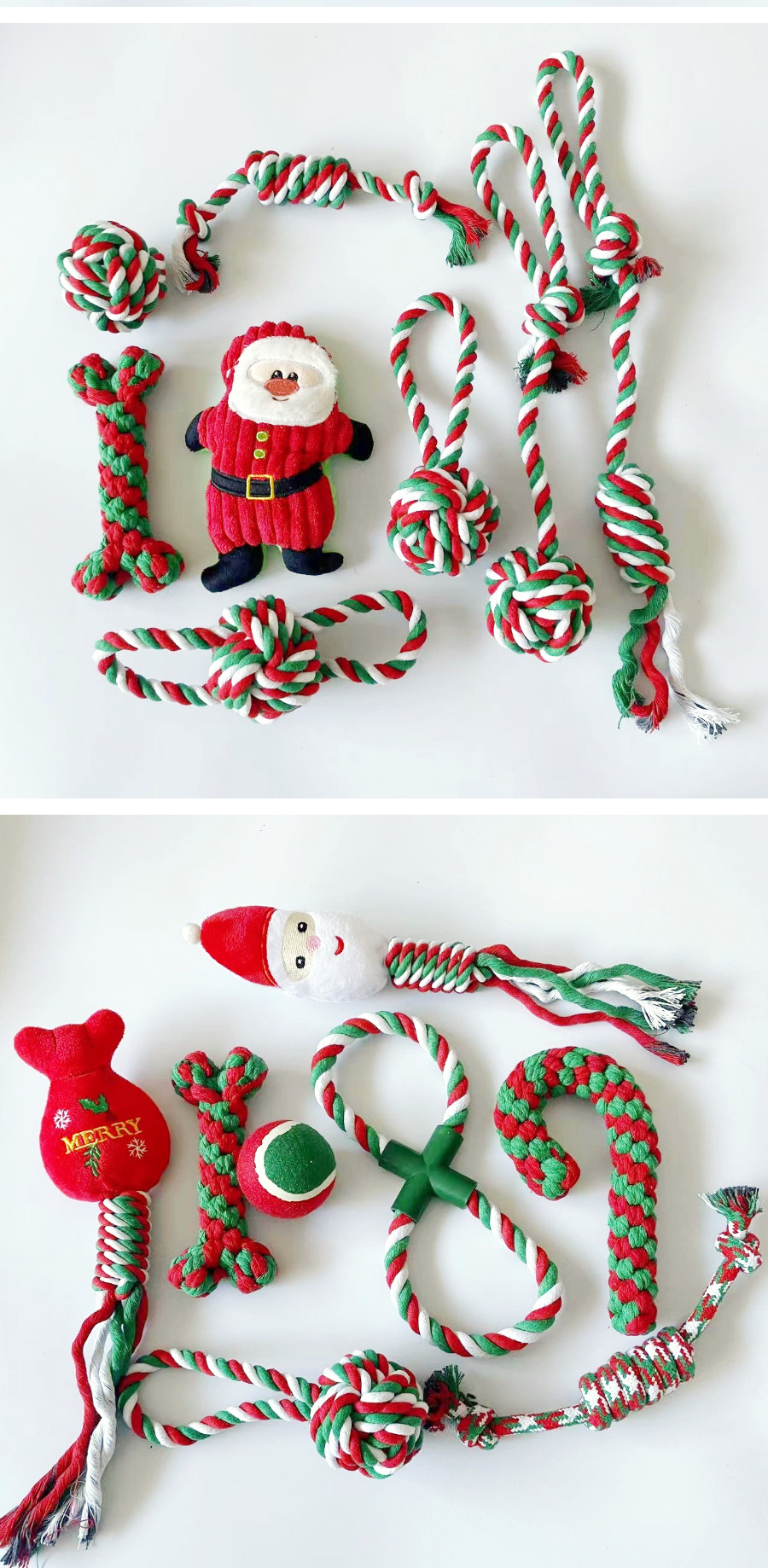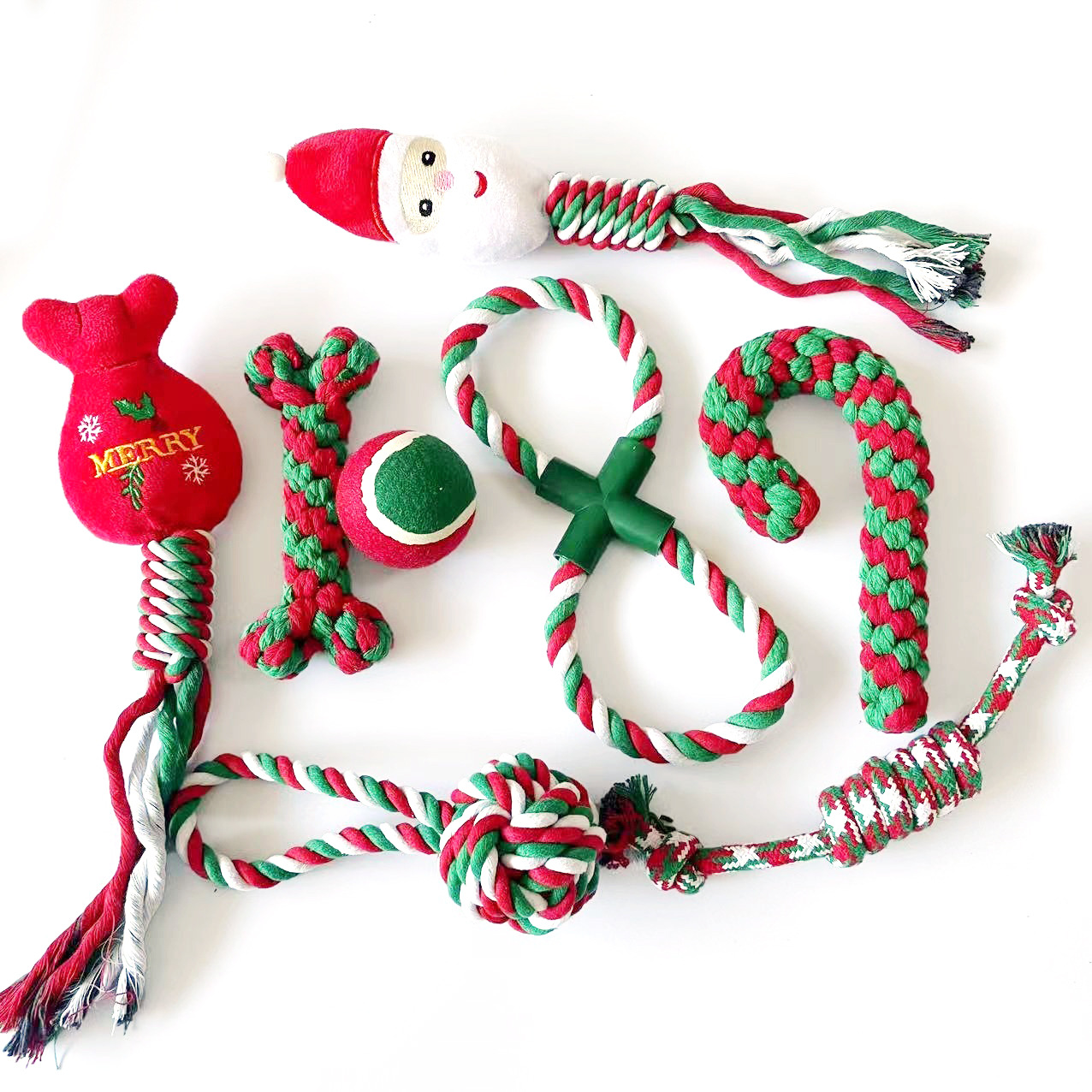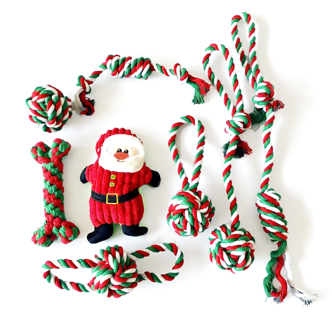 아마존 폭발 애완 동물 용품 개 면 로프 장난감 어금니 애완 동물 장난감 세트 크리스마스 개 장난감 선물
