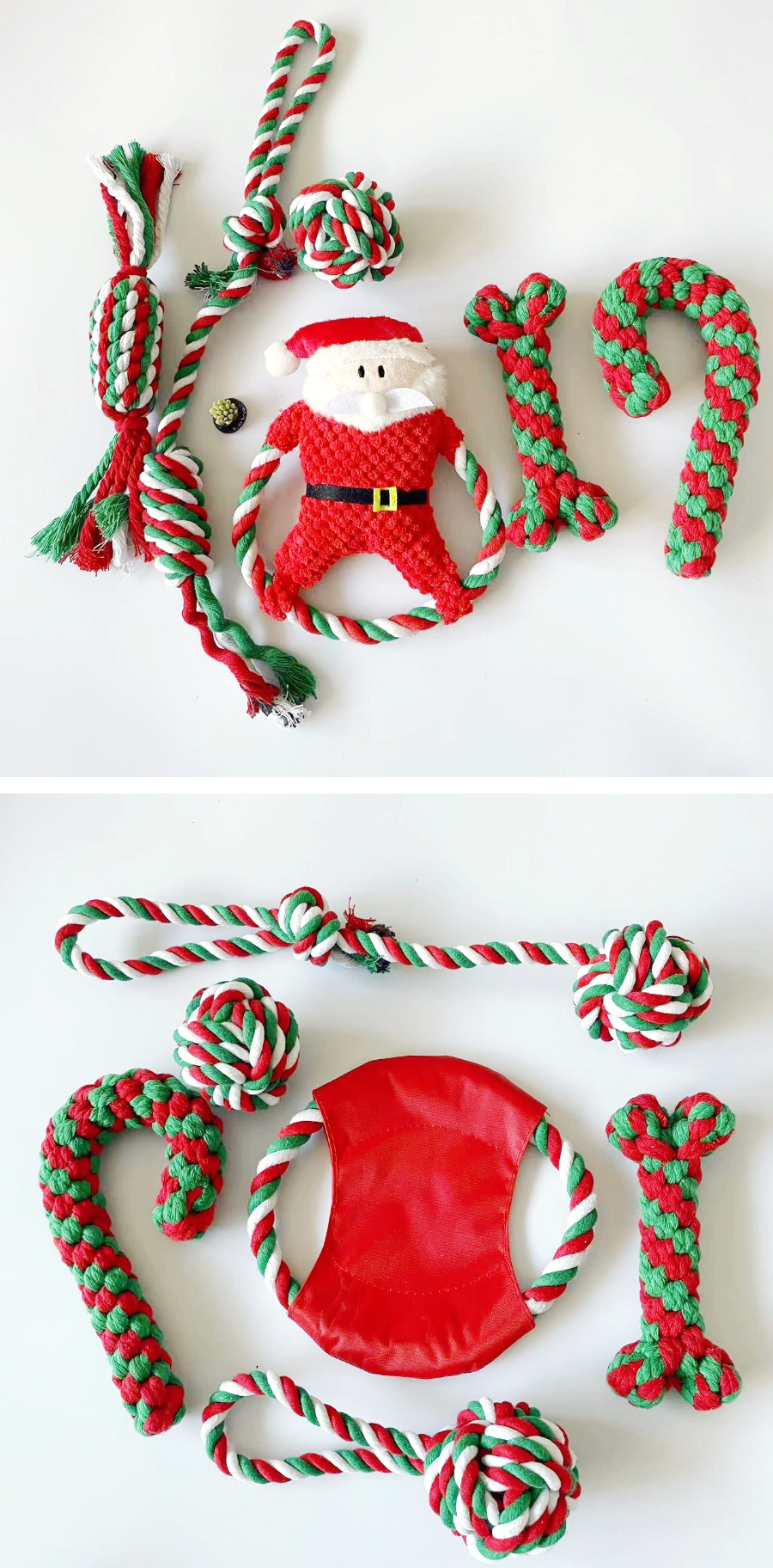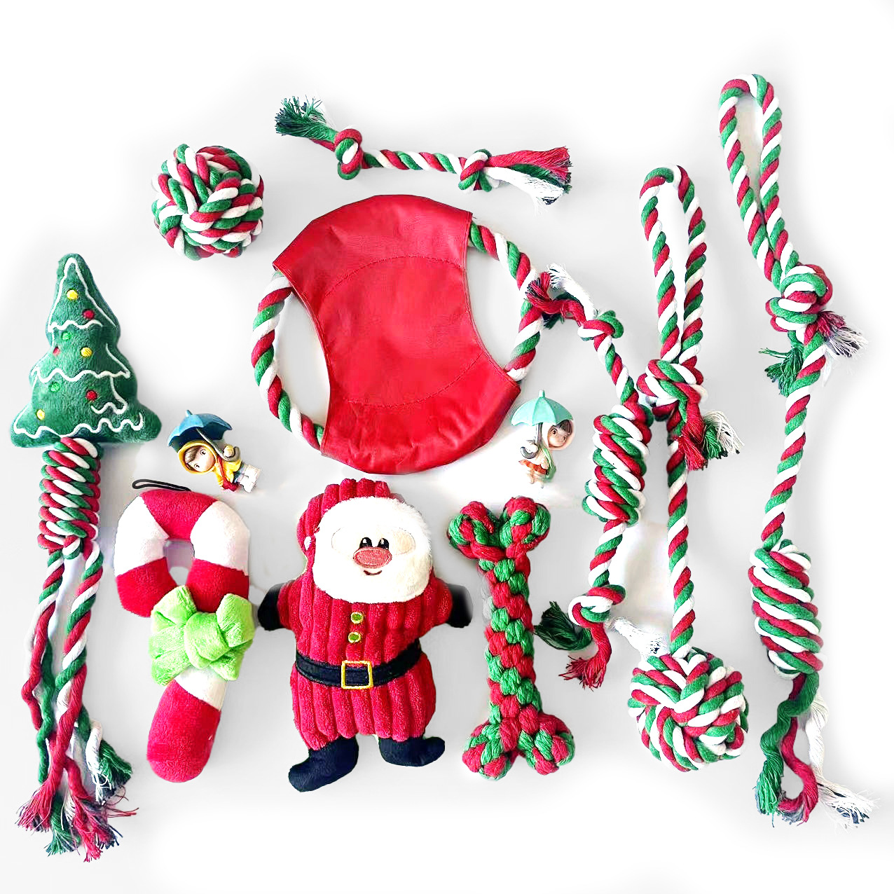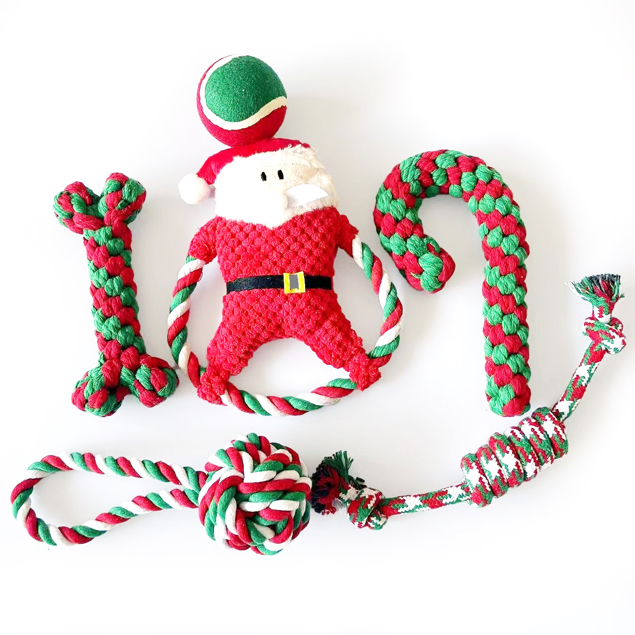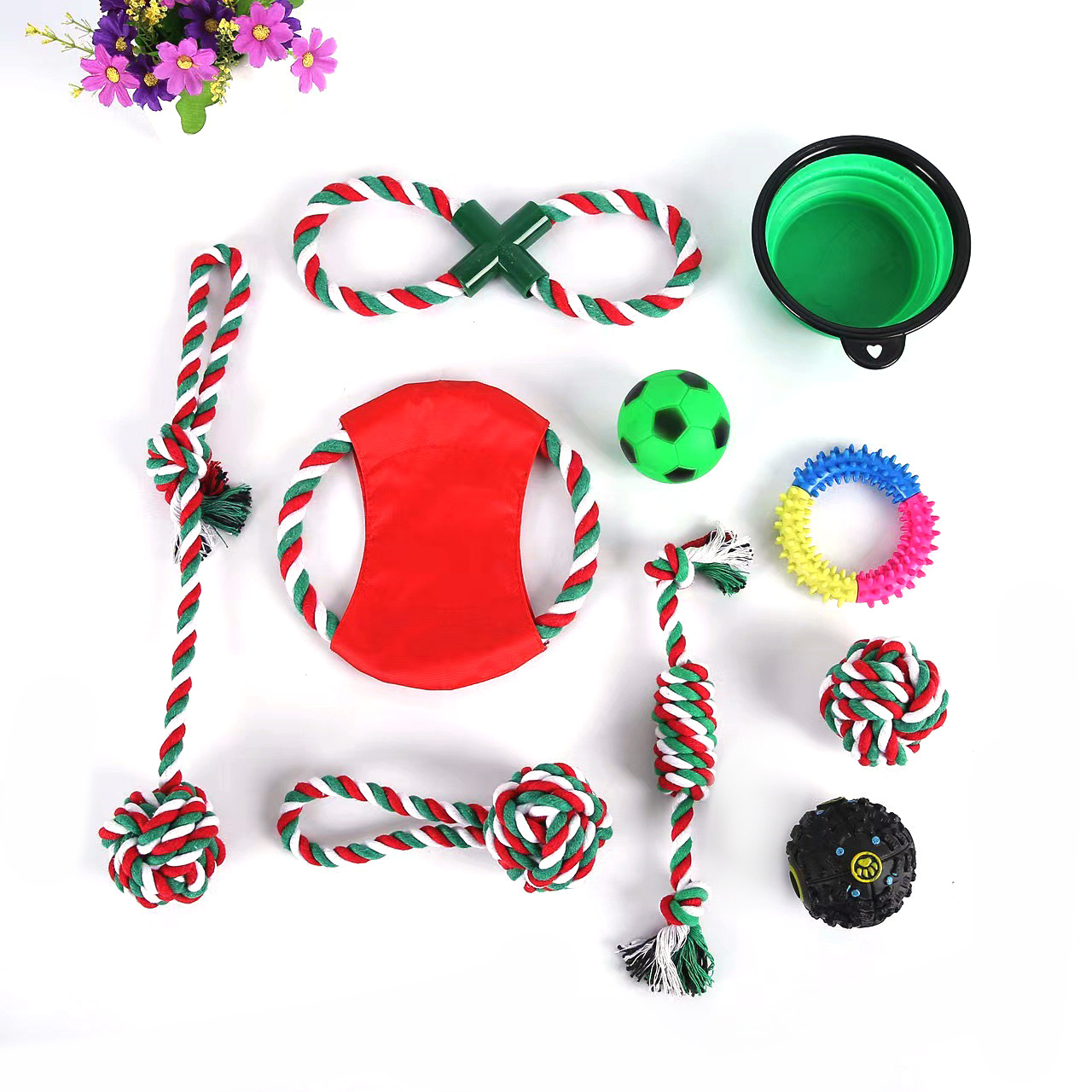 아마존 폭발 애완 동물 용품 개 면 로프 장난감 어금니 애완 동물 장난감 세트 크리스마스 개 장난감 선물