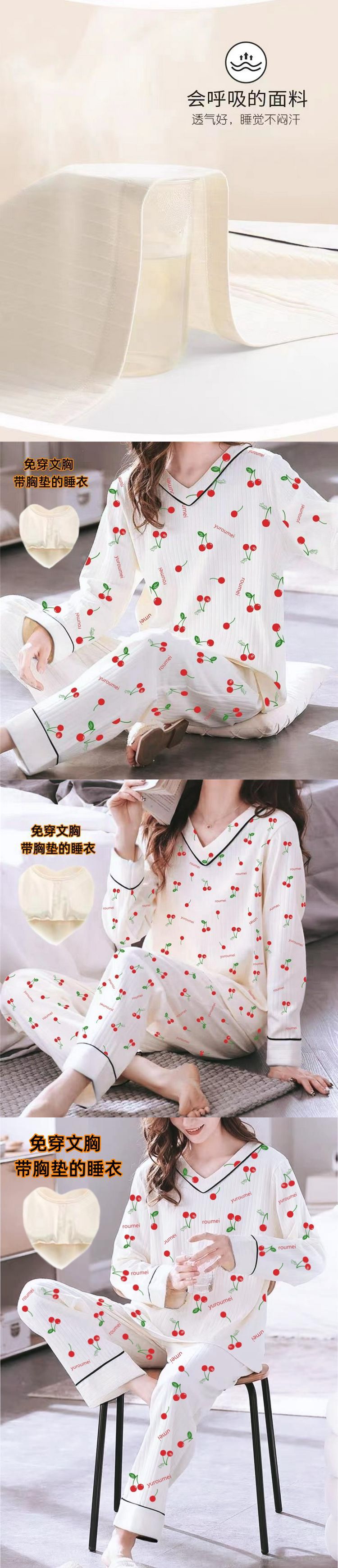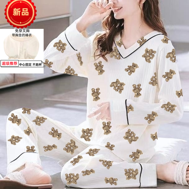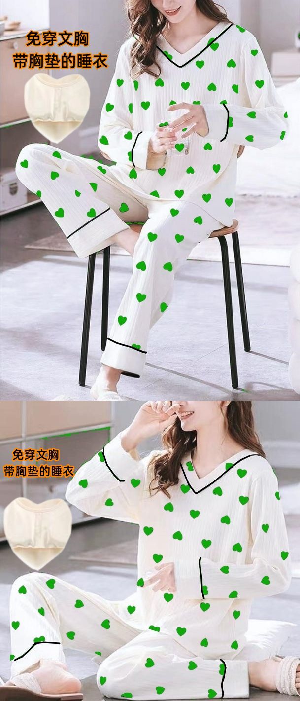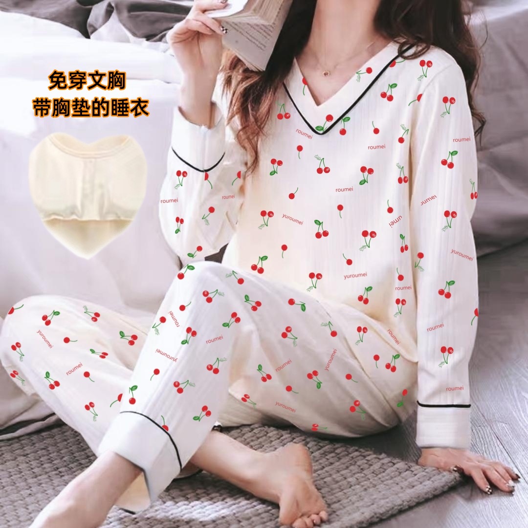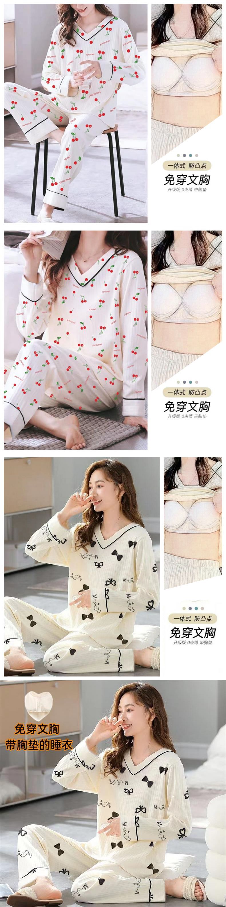 가슴 패드 여성의 봄과 가을 학생 긴 소매 달콤한 귀여운 소녀 플러스 사이즈 홈 옷 세트 입고 잠옷스토어 가기