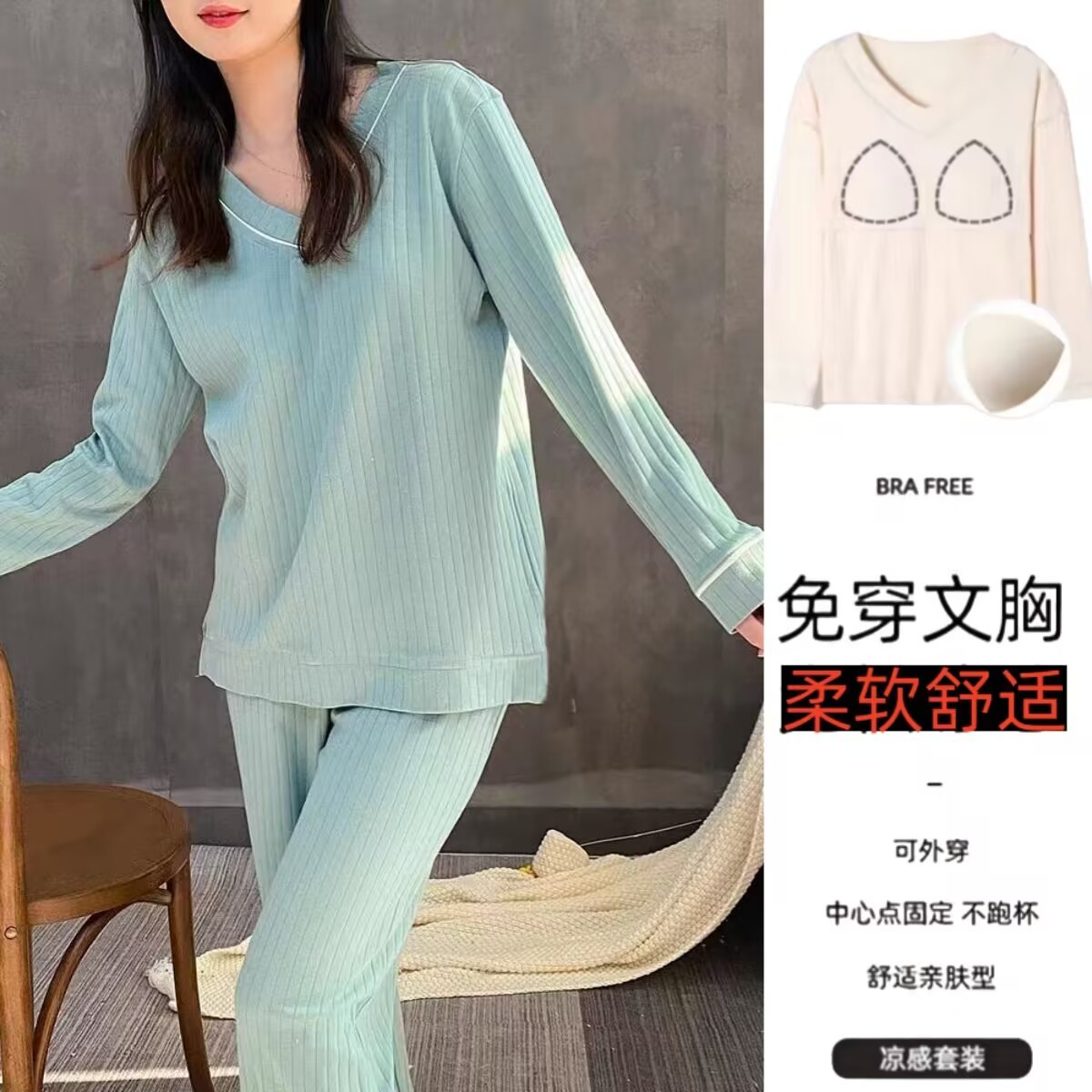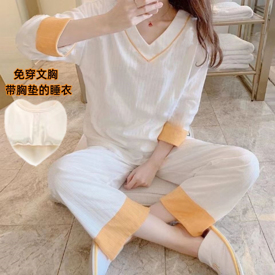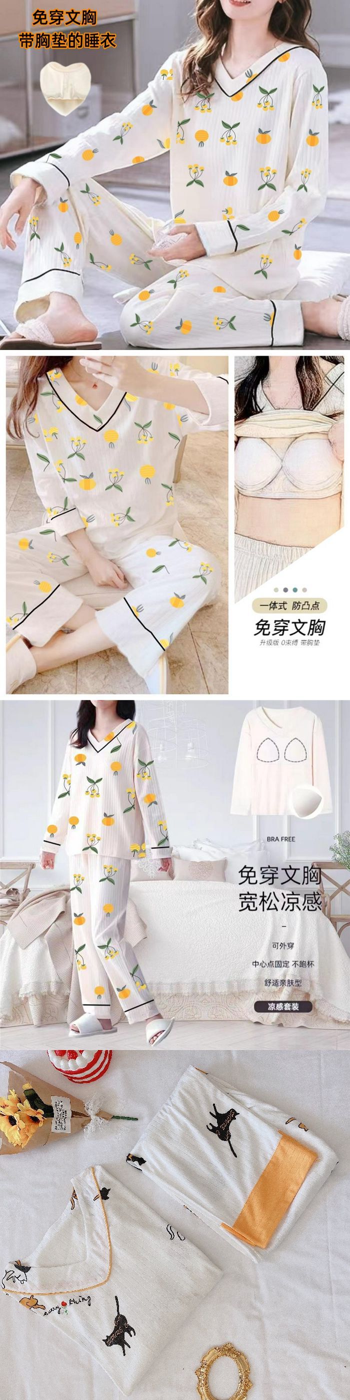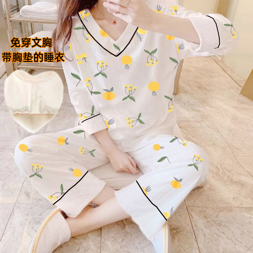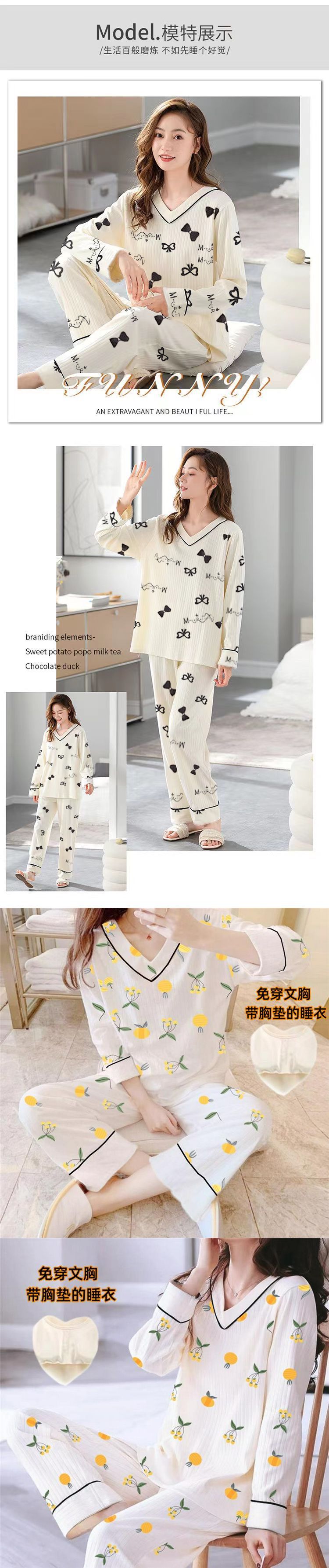 가슴 패드 여성의 봄과 가을 학생 긴 소매 달콤한 귀여운 소녀 플러스 사이즈 홈 옷 세트 입고 잠옷스토어 가기