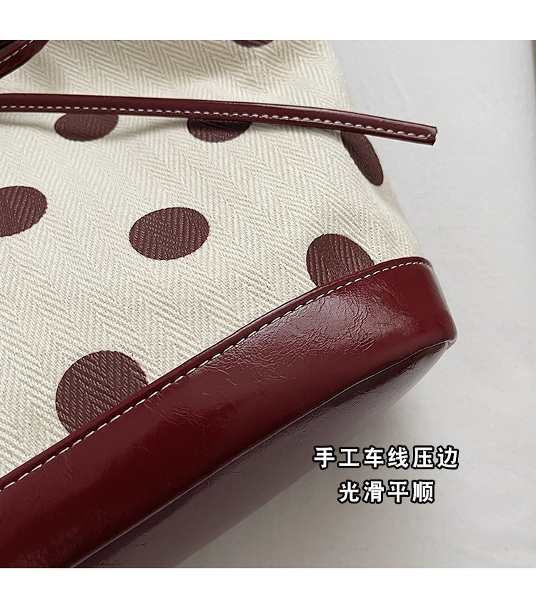 캔버스 가방 여성 가방 2024 새로운 고급 질감 폴로 도트 보우 어깨 가방 휴식 스타일 바쁜 버킷 가방