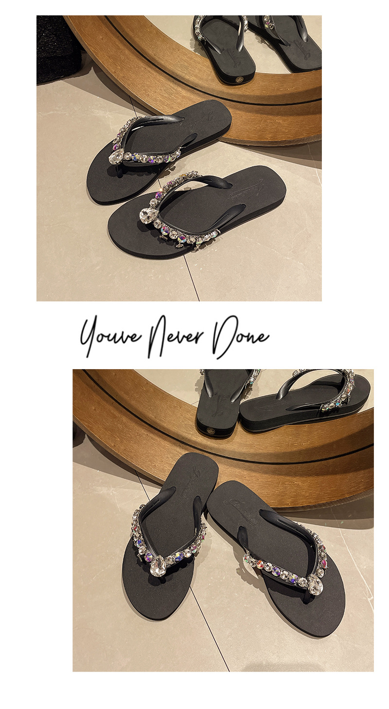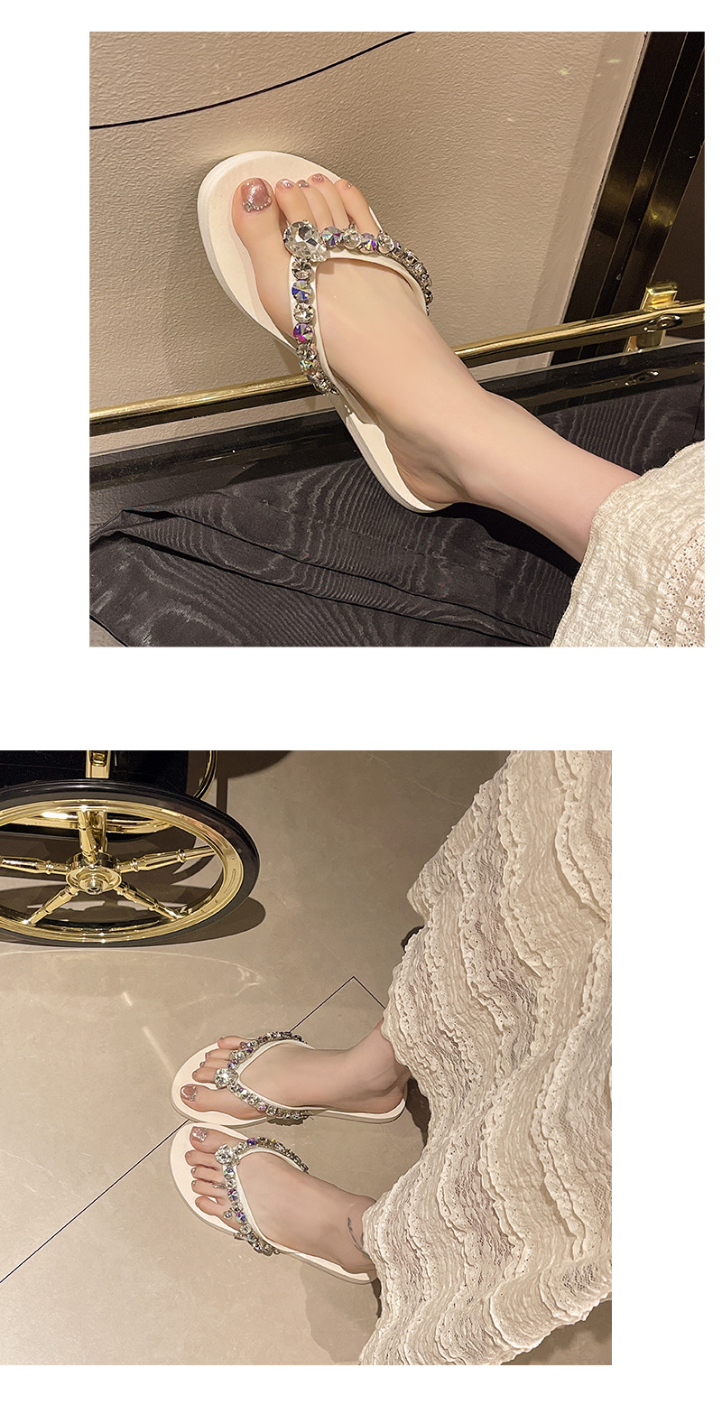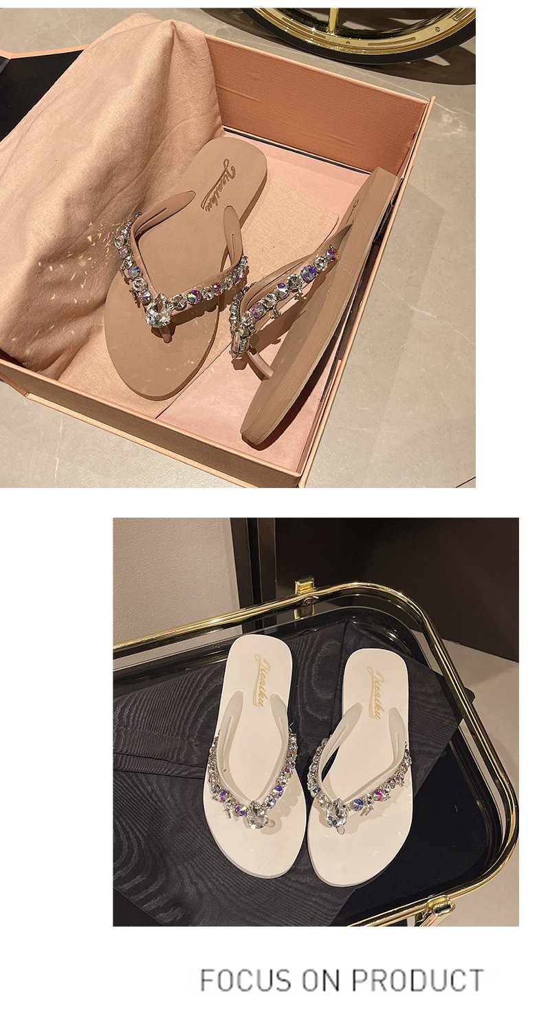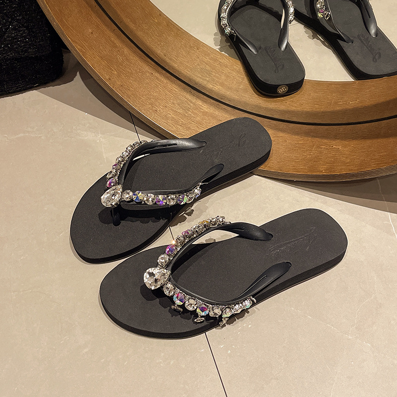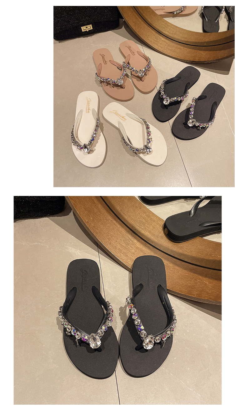 2025년 여름 신상 휴양지 스타일 라인스톤 펜던트 플랫 슬리퍼 여성용 해변 샌들