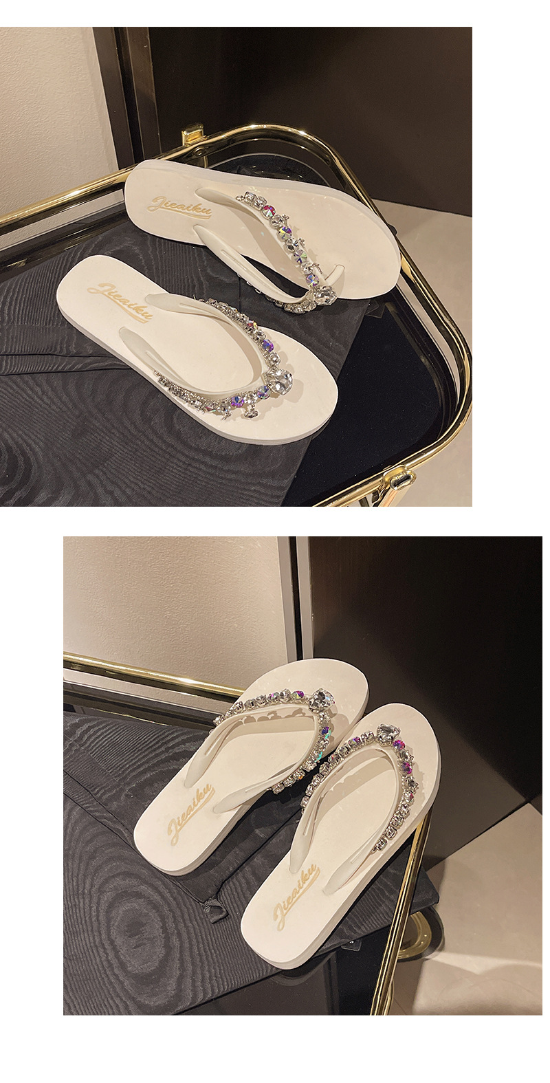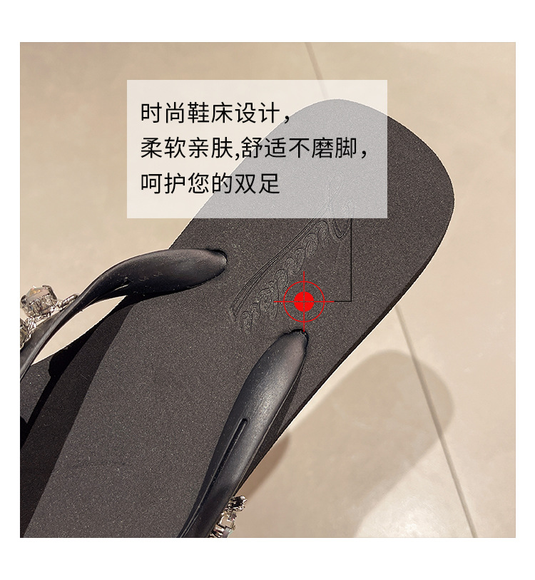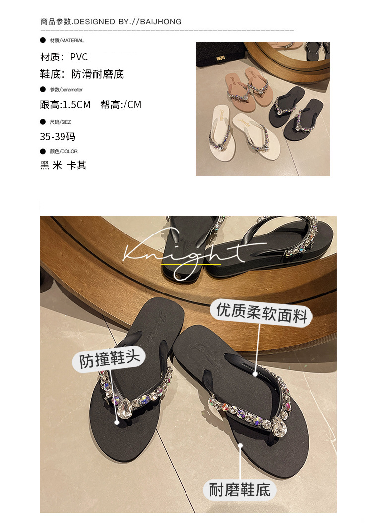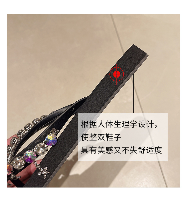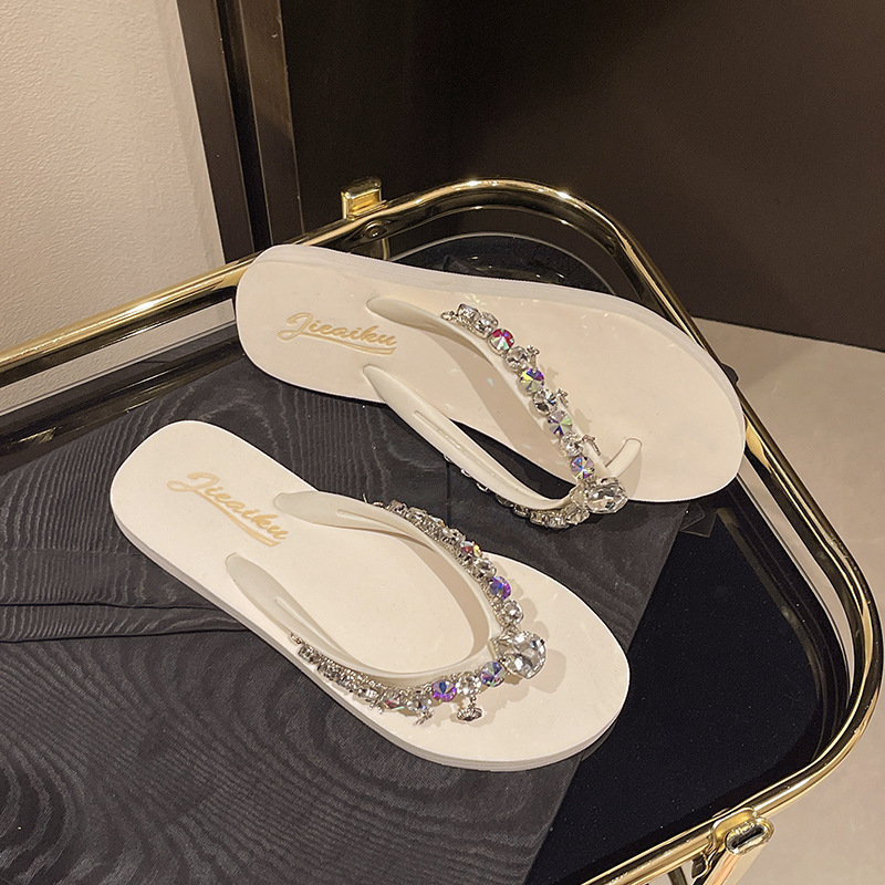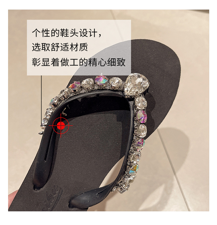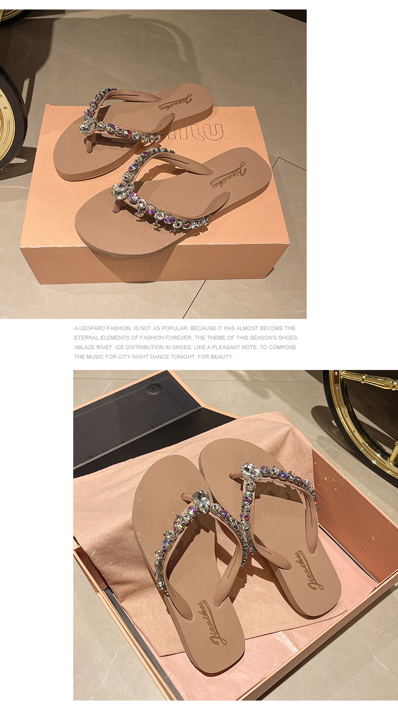 2025년 여름 신상 휴양지 스타일 라인스톤 펜던트 플랫 슬리퍼 여성용 해변 샌들