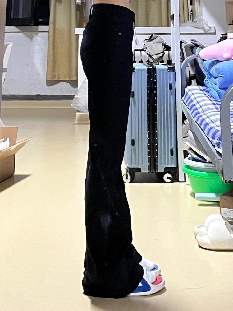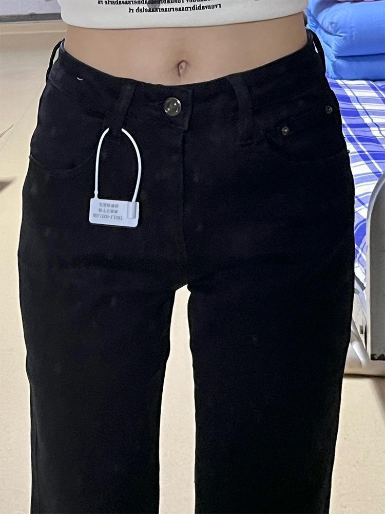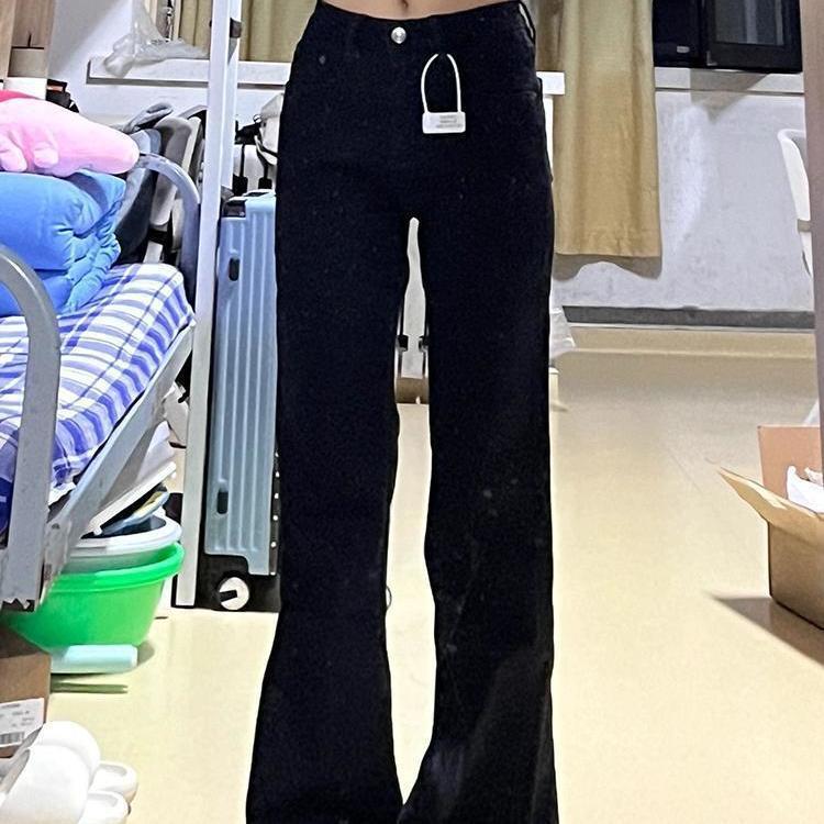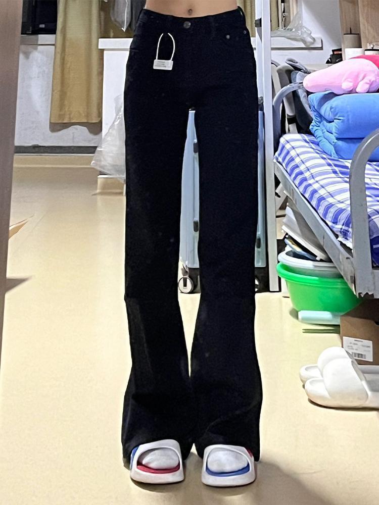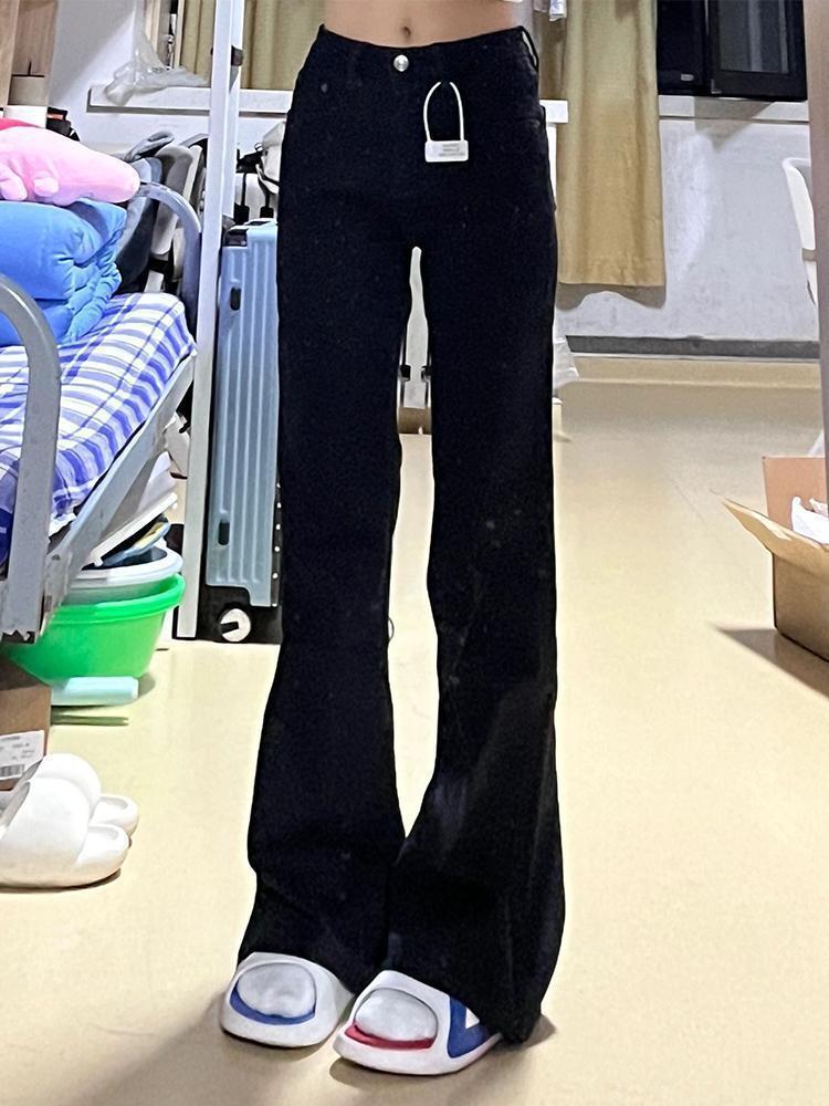 블랙 마이크로 플레어 청바지 여성의 봄과 가을 새로운 키 큰 허리 탄성 슬리밍 말굽 트렌디 트럼펫 긴 바지스토어 가기