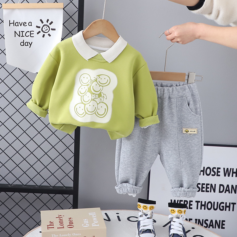 소년 세트 봄 2024 새로운 서양식 어린이 봄과 가을 옷 아기의 캐주얼 긴 소매 스웨터 2 피스 세트스토어 가기