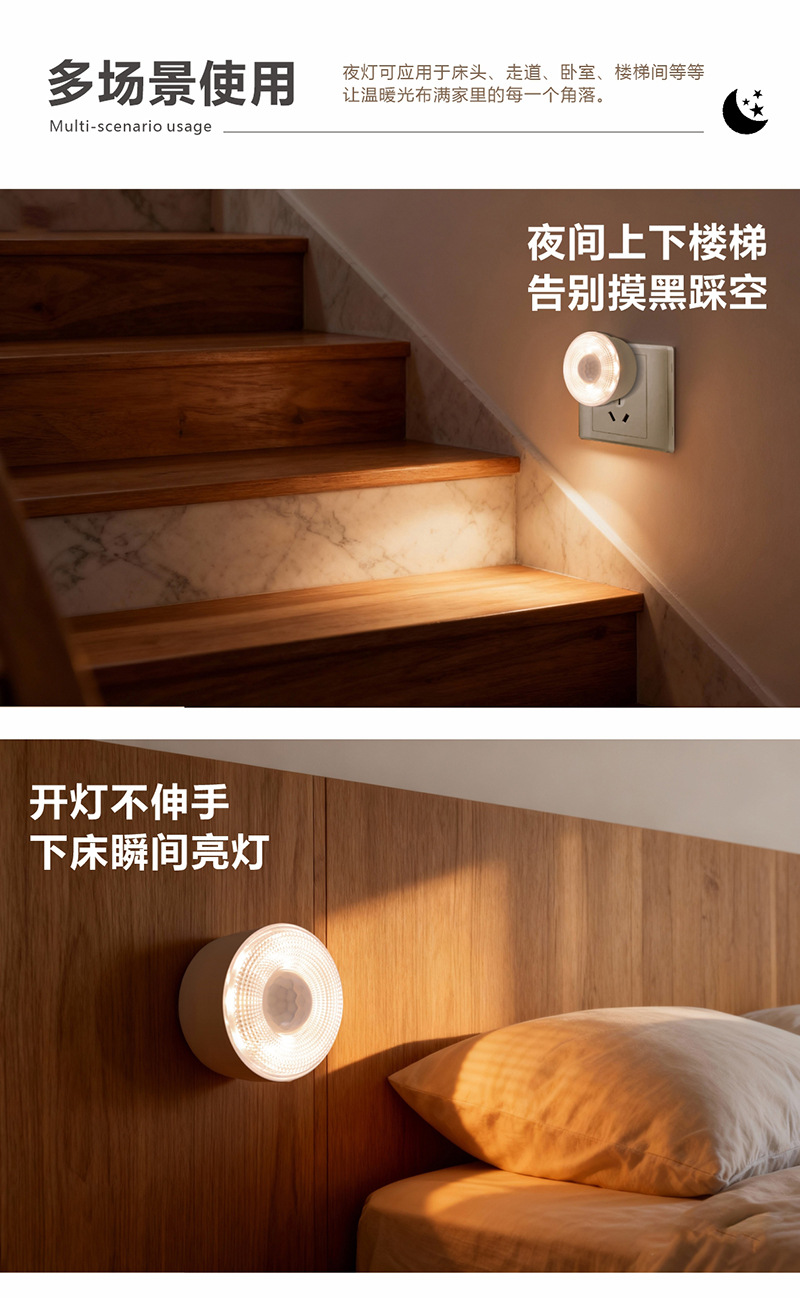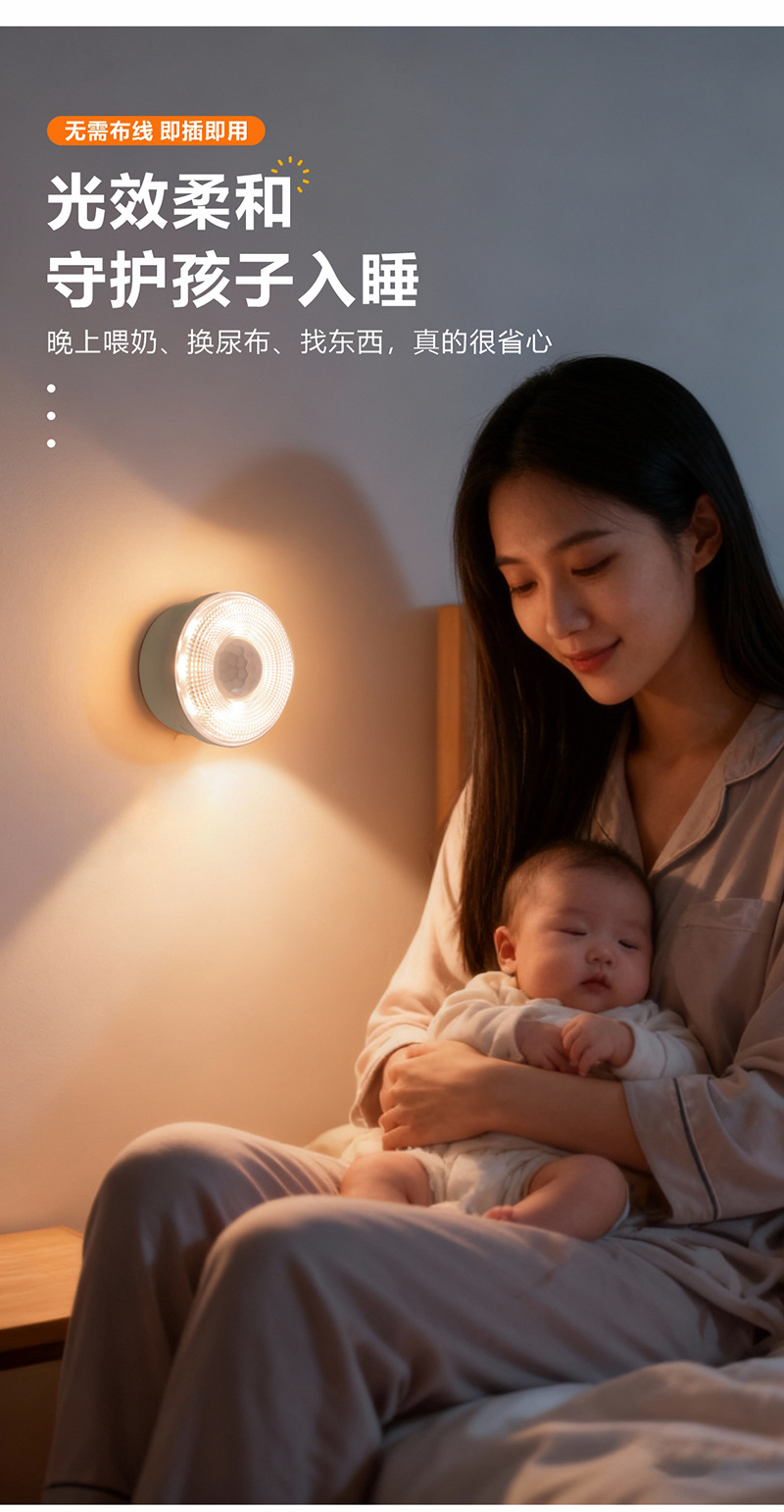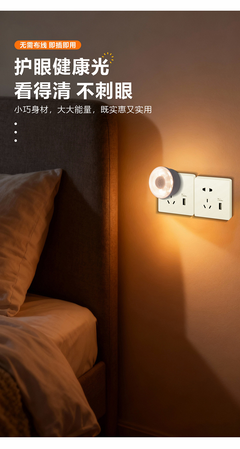 LED 플러그인 인체감지 적외선 센서 화장실 야간등, 스마트 침실 복도 야간등