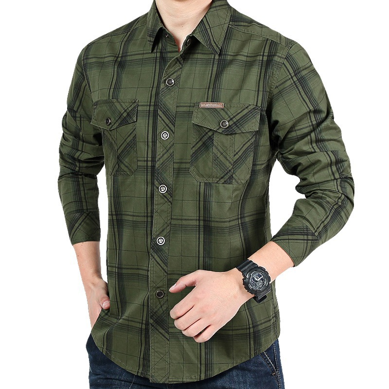 봄과 가을 새로운 남자의 긴 소매 셔츠 청소년 격자 무늬 느슨한 플러스 사이즈 사업 캐주얼 셔츠 긴 소매 셔츠