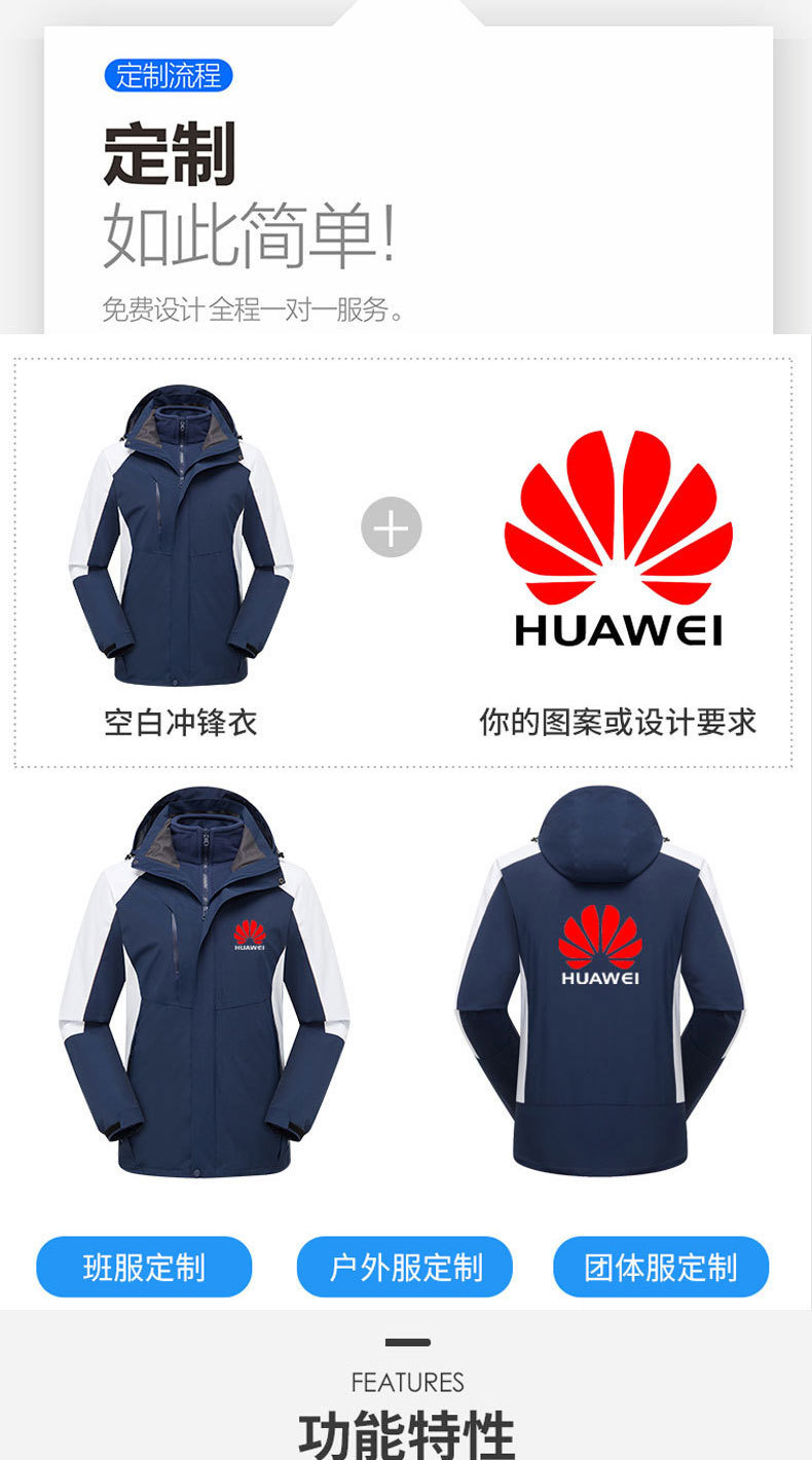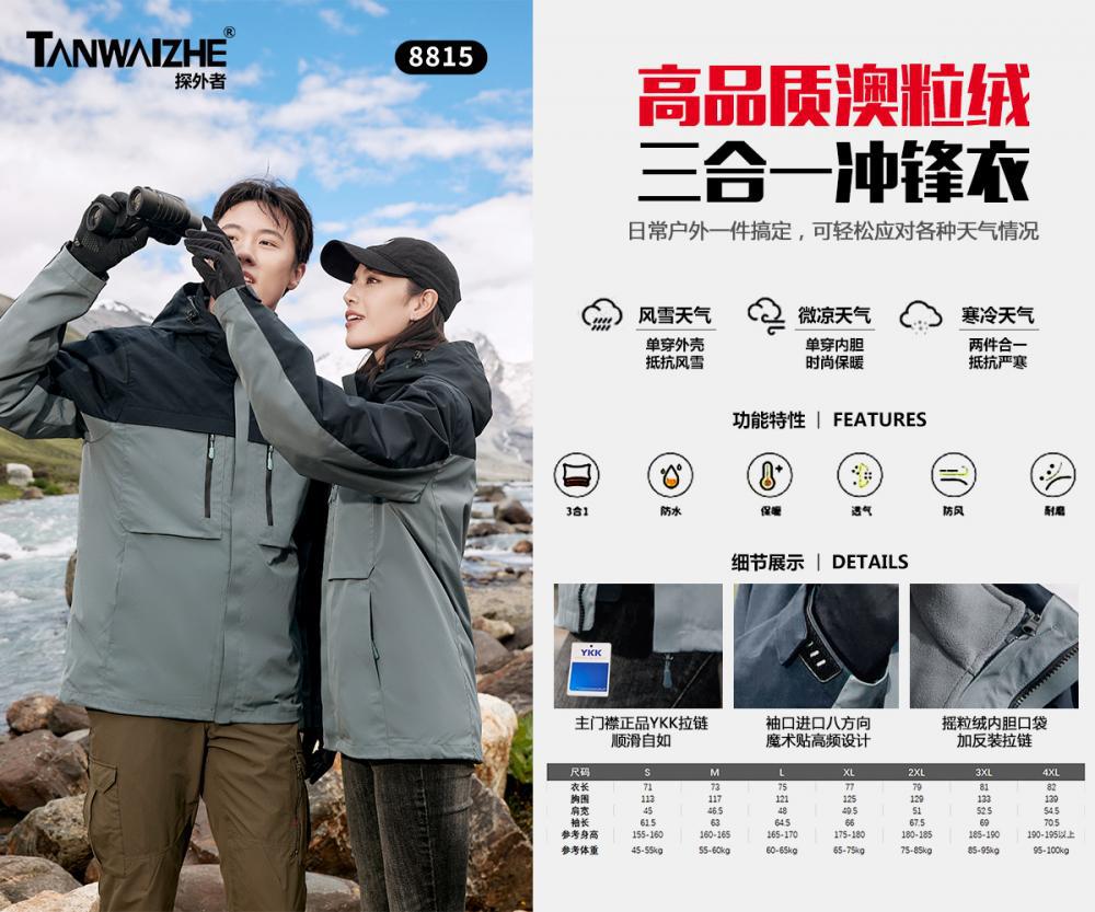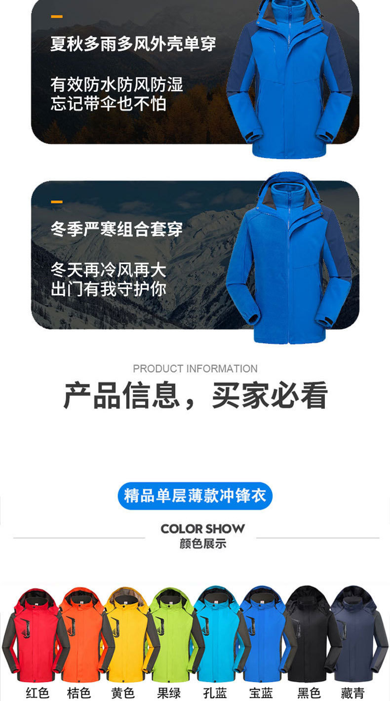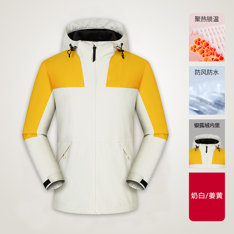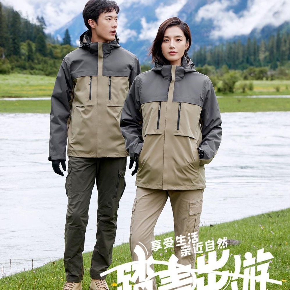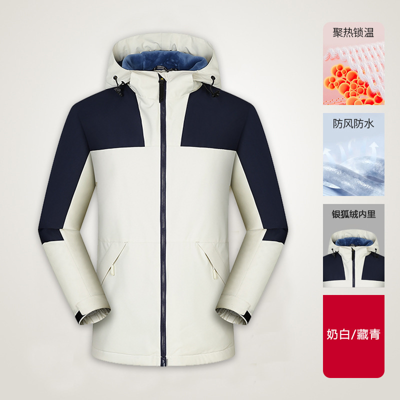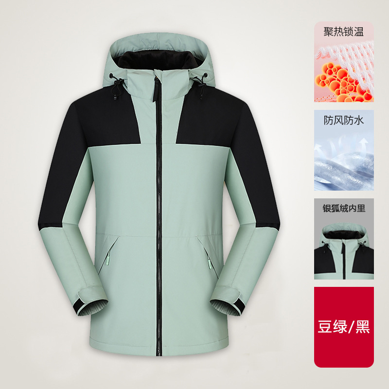 맞춤형 로고 자수 방풍 3-in-1 0.05kg 피스 세트와 벨벳 두꺼운 야외 작업복이 포함된 재킷 작업복스토어 가기