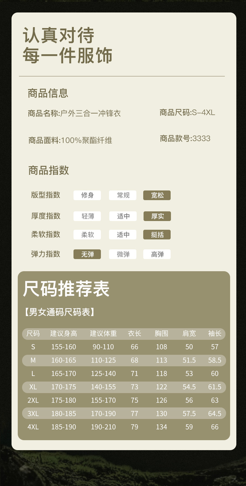 플리스 안감 삼중 기능 남녀공용 아웃도어 사이클링 대형 브랜드 대체 방수 단체 작업복 등산복