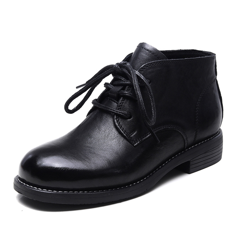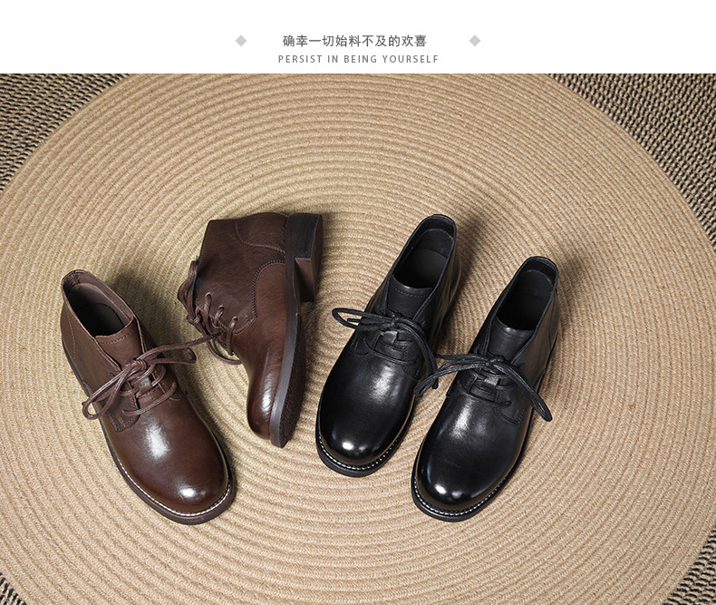 Delphinium 2024 가을 및 겨울 새로운 첫 번째 레이어 Cowhide 빈티지 캐주얼 레이스 업 하이 탑 싱글 레이어 부츠 간단한 올 매치 발목 부츠 가죽 부츠