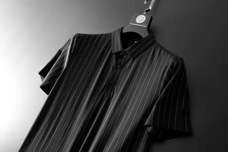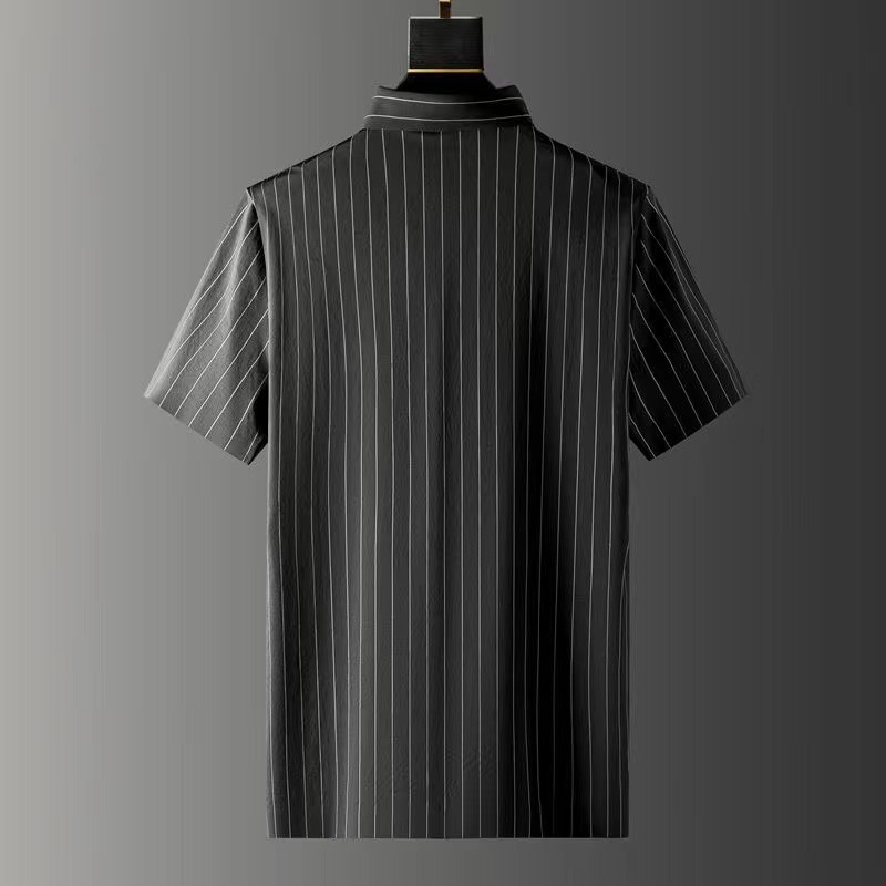 유럽 역 진입 고급 고급 비즈니스 캐주얼 세트 남성 여름 아이스 실크 반팔 얇은 줄무늬 투피스 세트스토어 가기