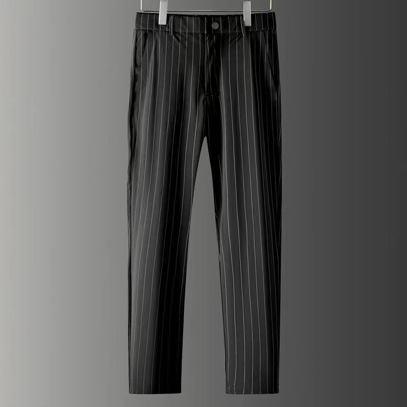유럽 역 진입 고급 고급 비즈니스 캐주얼 세트 남성 여름 아이스 실크 반팔 얇은 줄무늬 투피스 세트