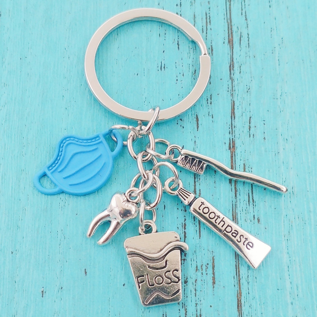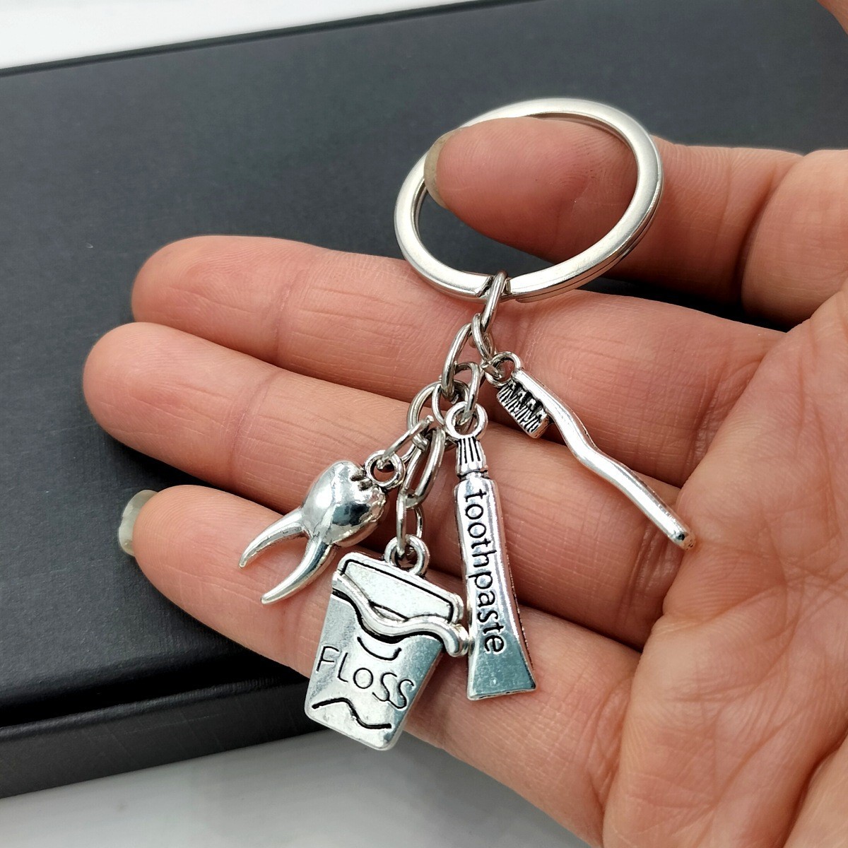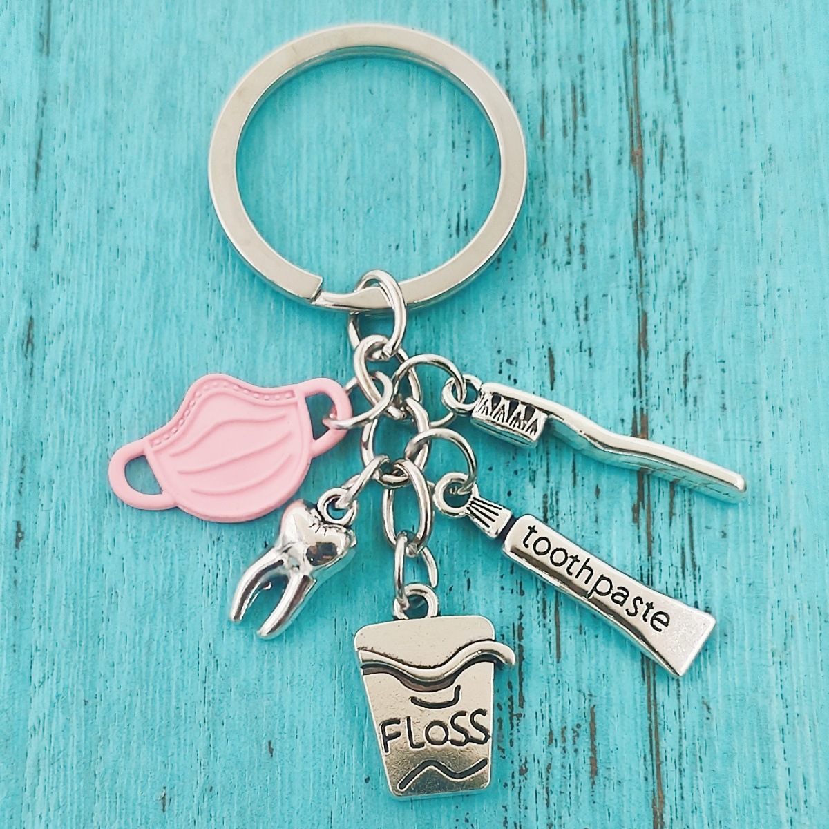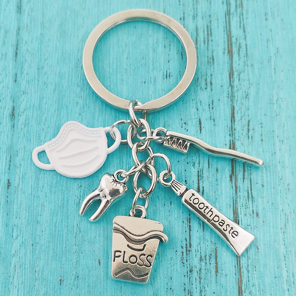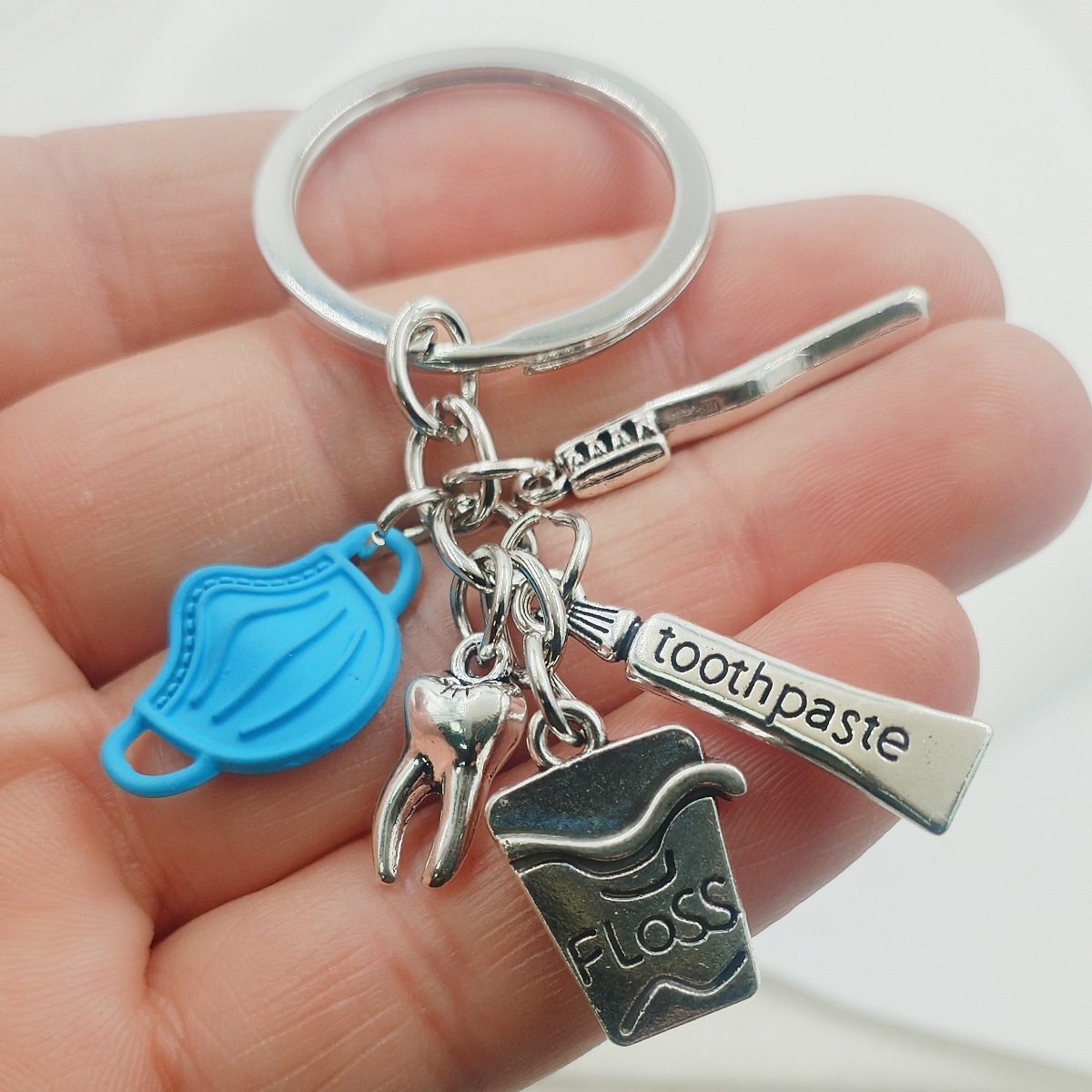 아마존 새로운 치과 의사 건강한 칫솔 치약 치과 치아 치아 합금 펜던트 키 링 배낭 액세서리