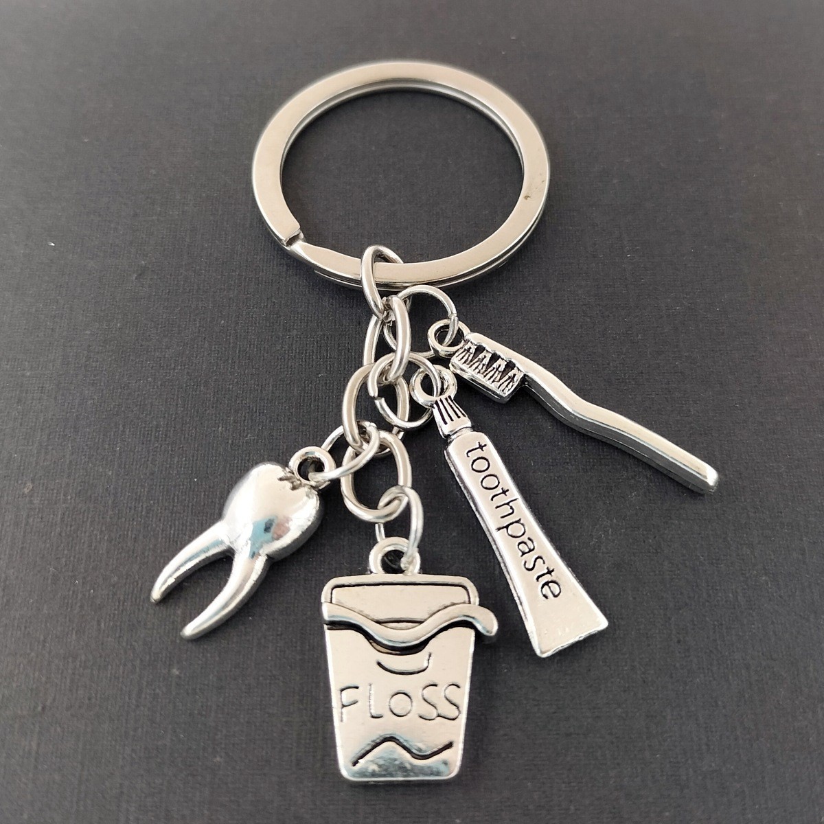 아마존 새로운 치과 의사 건강한 칫솔 치약 치과 치아 치아 합금 펜던트 키 링 배낭 액세서리스토어 가기