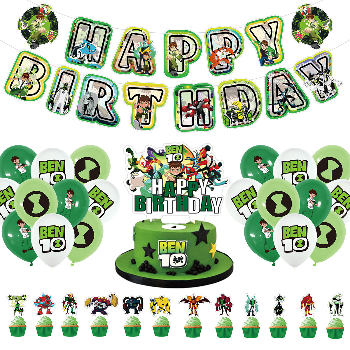 주니어 해커 테마 생일 파티 장식 깃발 풍선 깃발 벤 10 어린이 파티 용품 세트
