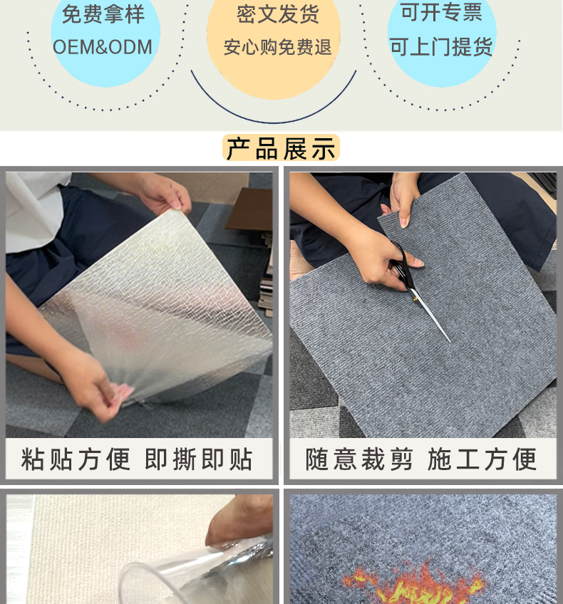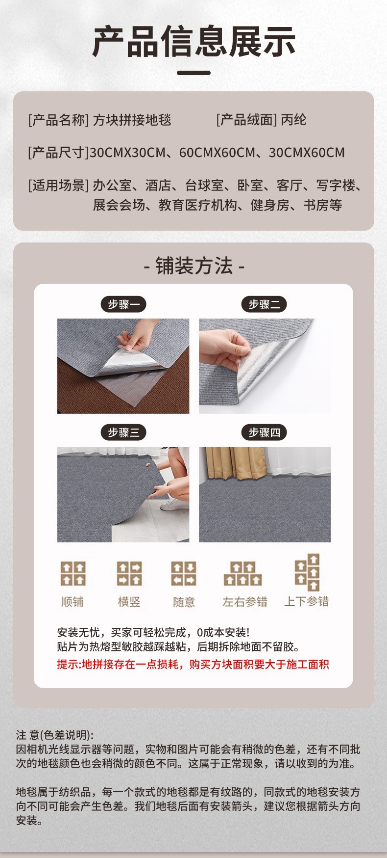 홈 오피스, 침실, 거실용 무접착 자가 접착 카펫, 애완동물 미끄럼 방지 조립식 바닥 매트, 라벨 부착, 미끄럼 방지 및 내마모성