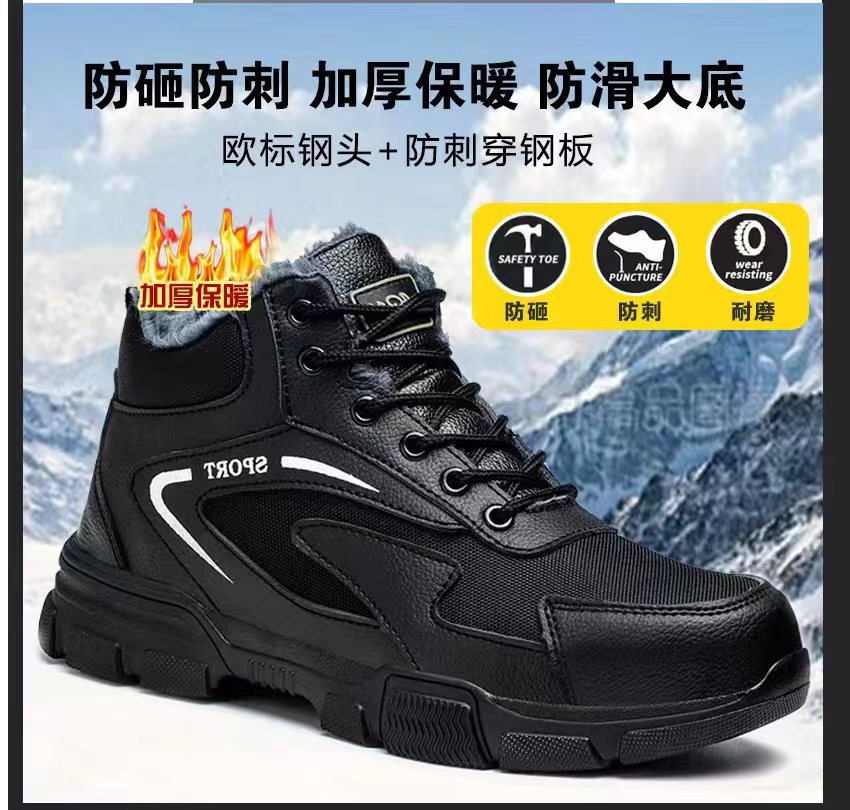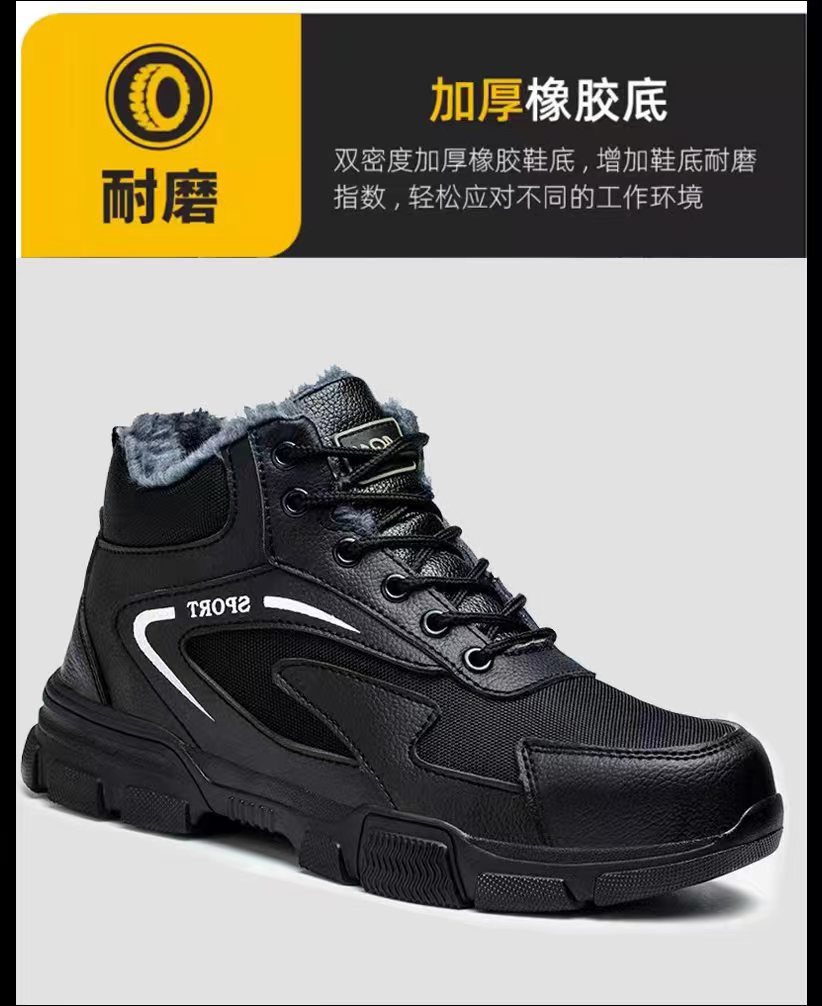 면화 추가 노동 보호 면화 신발은 가볍고 편안한 내마모성 아웃솔 열 보호 안전 신발을 두껍게 만들었습니다.
