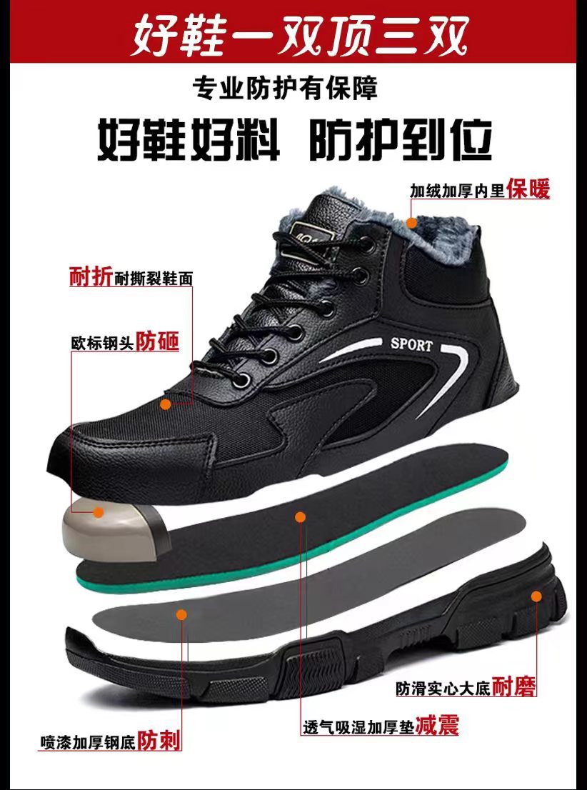 면화 추가 노동 보호 면화 신발은 가볍고 편안한 내마모성 아웃솔 열 보호 안전 신발을 두껍게 만들었습니다.스토어 가기