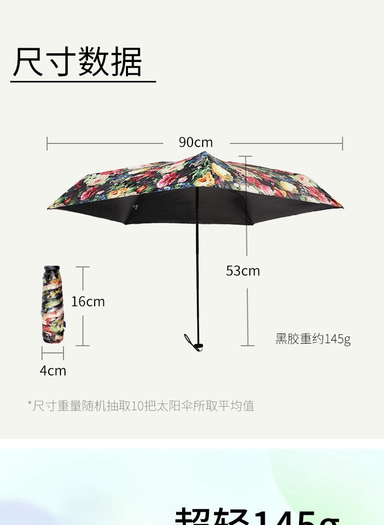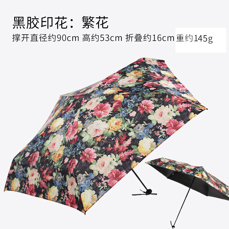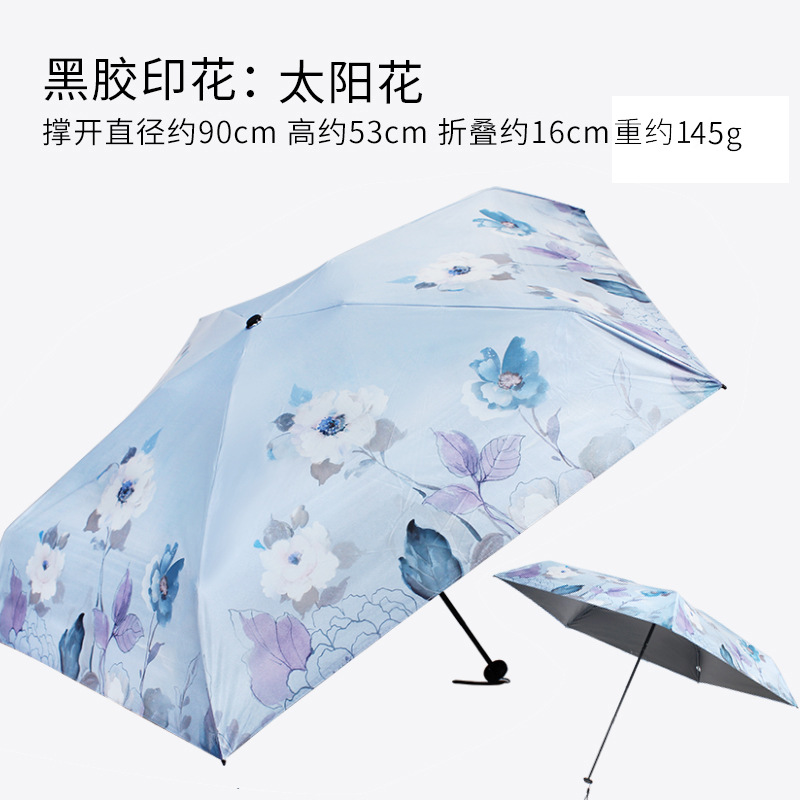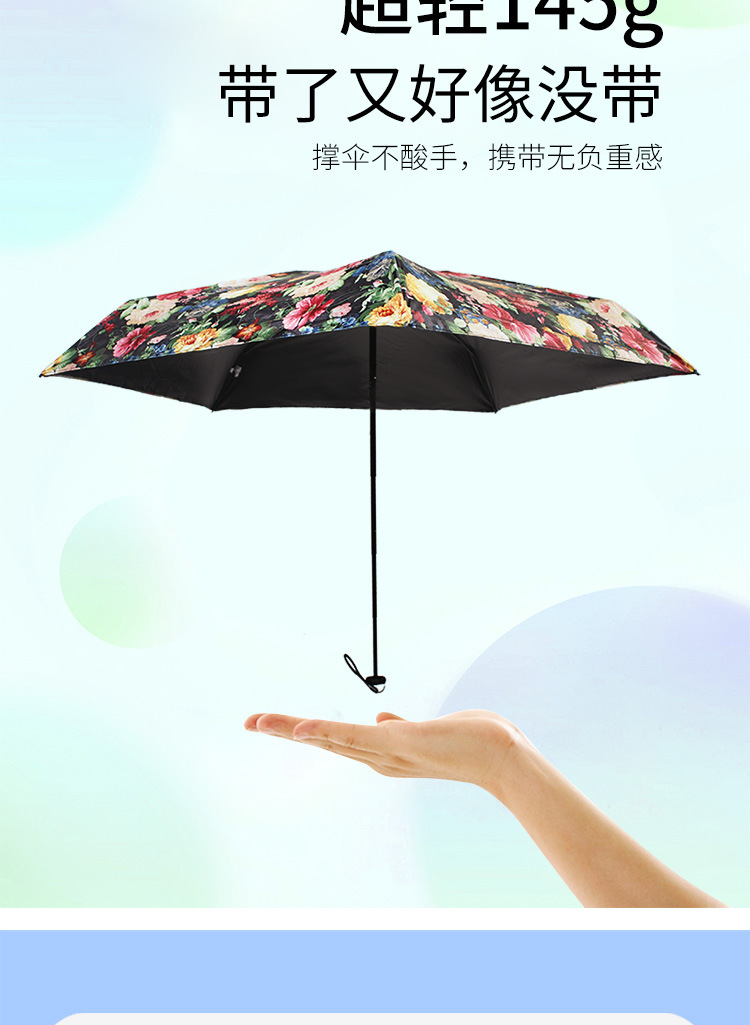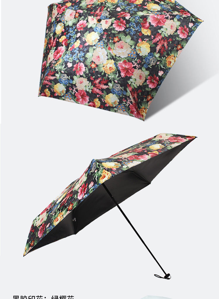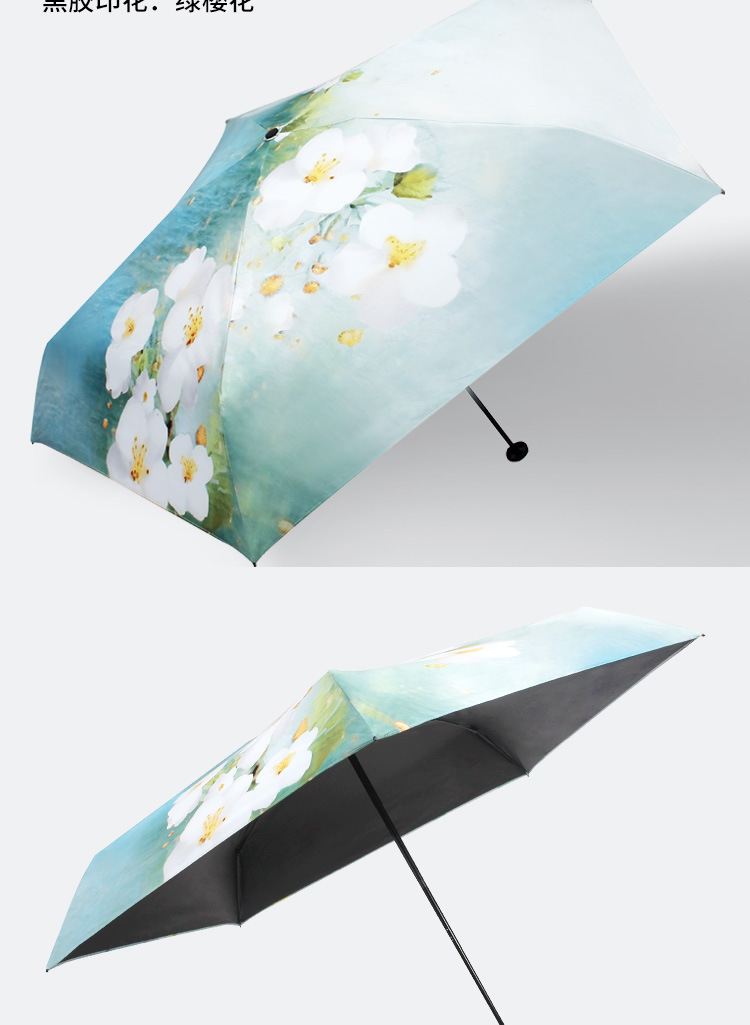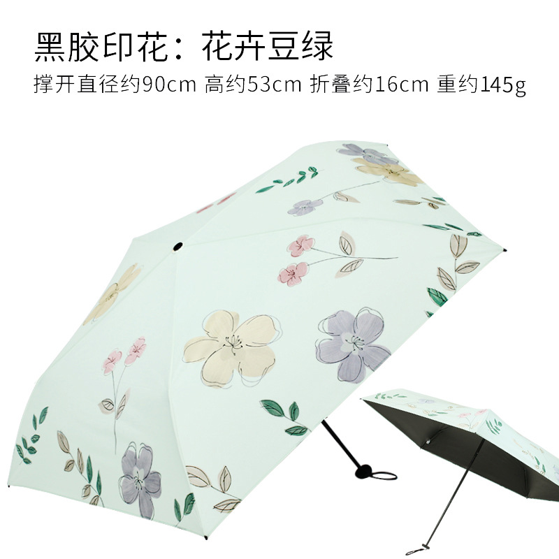 • 145g 블랙 코팅 미니 우산: 0519-3 플라워 콩 그린 (강력 자외선 차단)