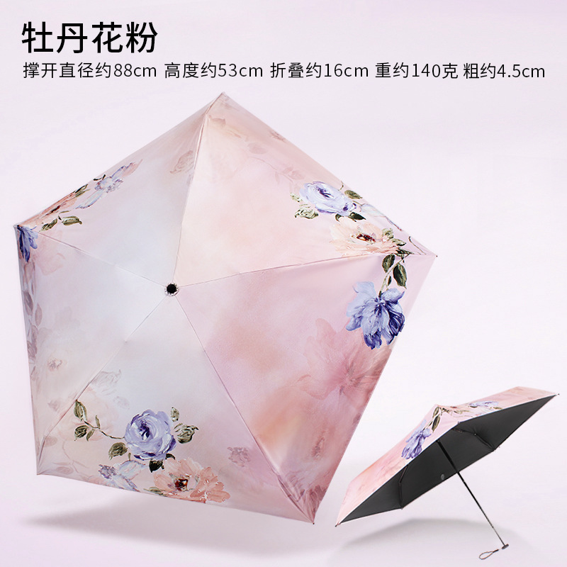 • 145g 블랙 코팅 미니 우산: 0519-3 핑크 모란 (강력 자외선 차단)