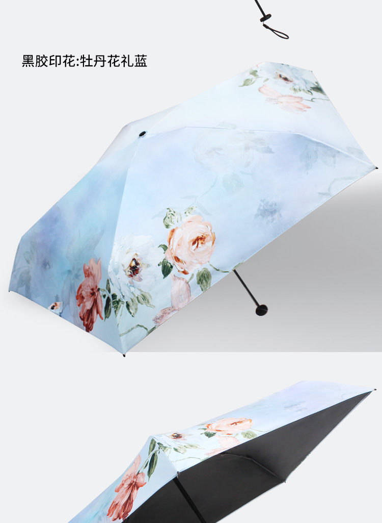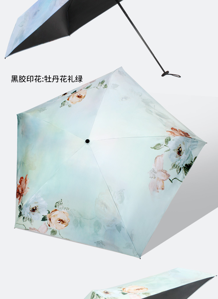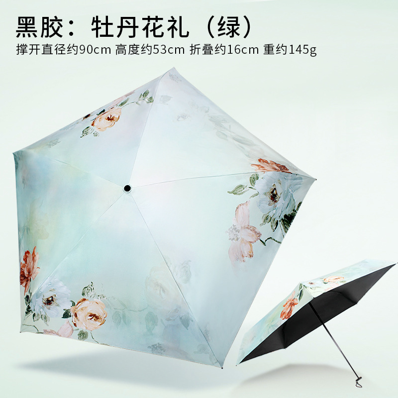 • 145g 블랙 코팅 미니 우산: 0519-3 녹색 모란 (강력 자외선 차단)