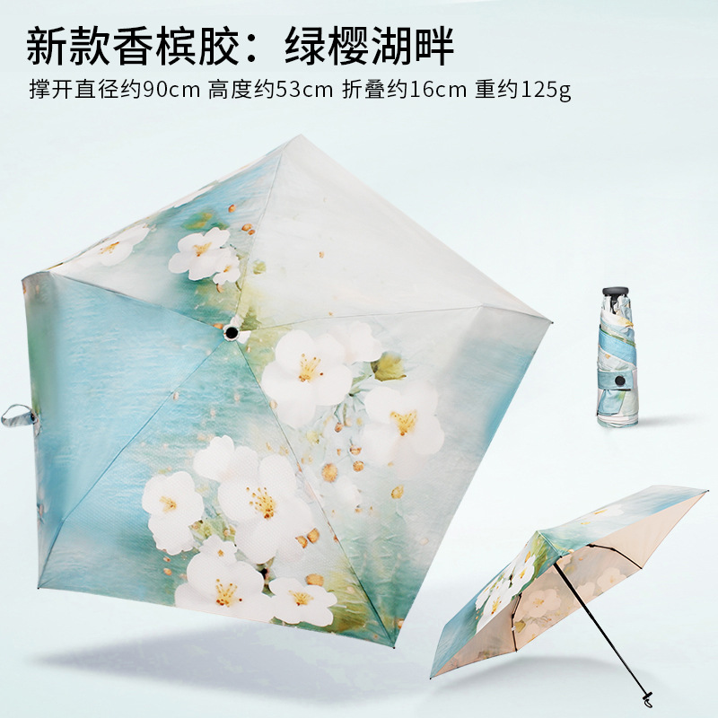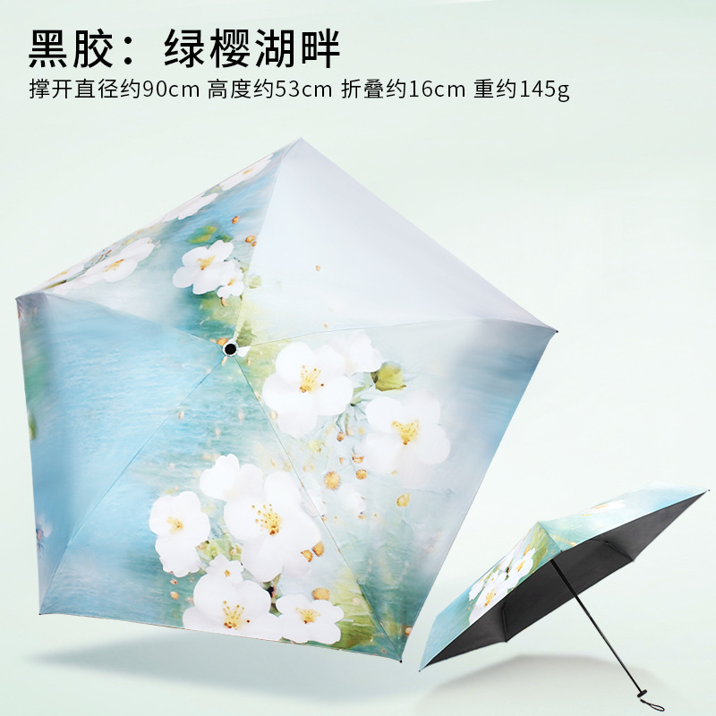 • 145g 블랙 코팅 미니 우산: 0519-3 그린 벚꽃 호숫가 (강력 자외선 차단)