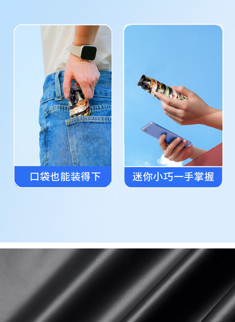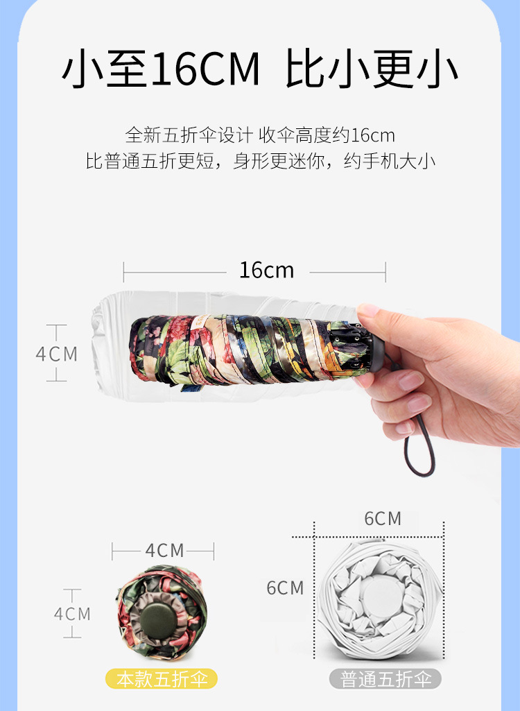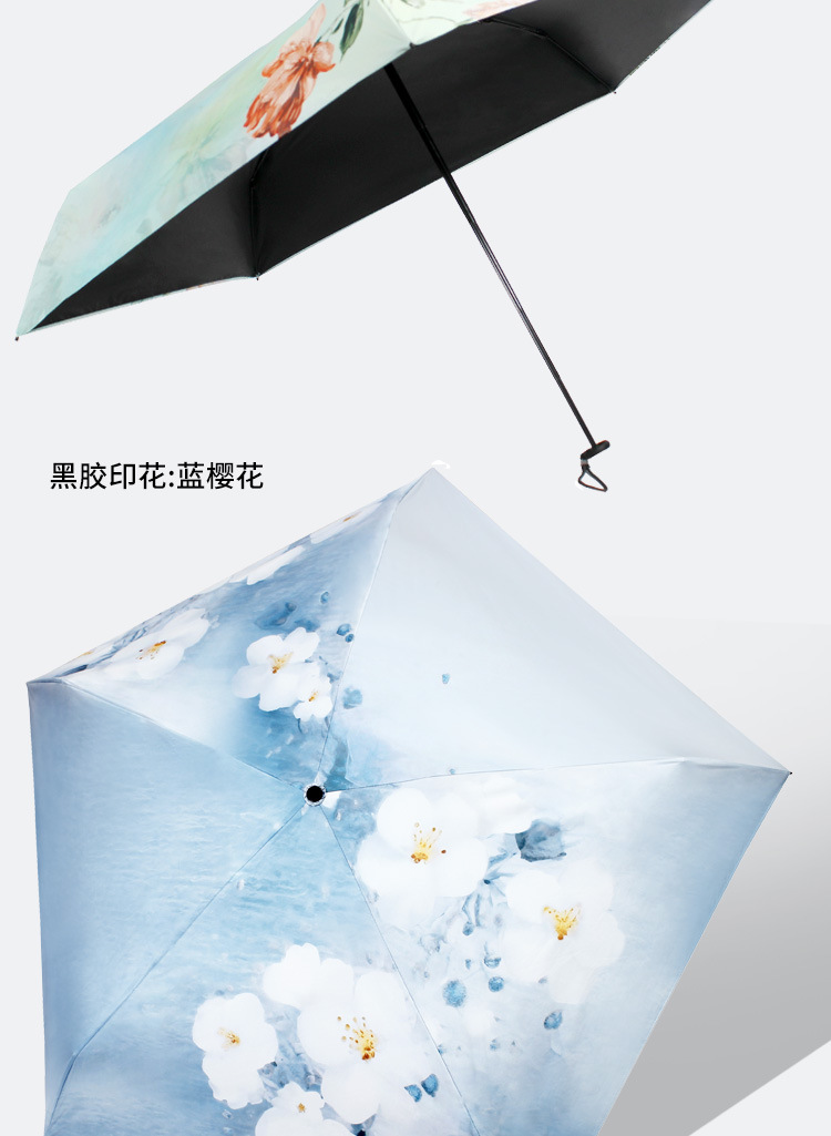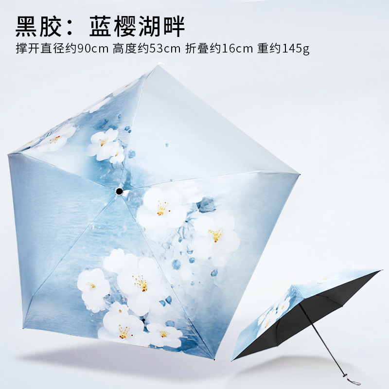 • 145g 블랙 코팅 미니 우산: 블루 벚꽃 호숫가 (강력 자외선 차단)