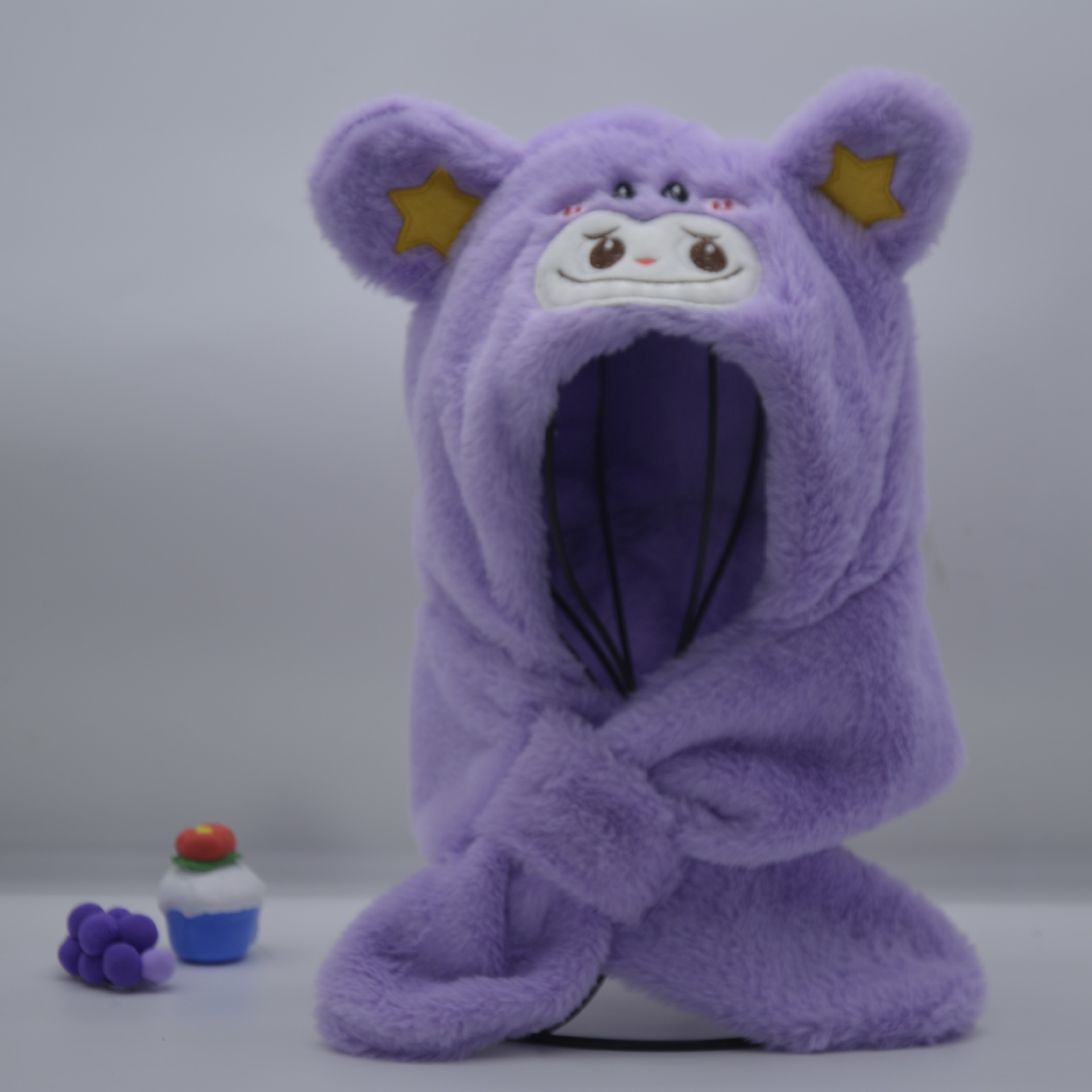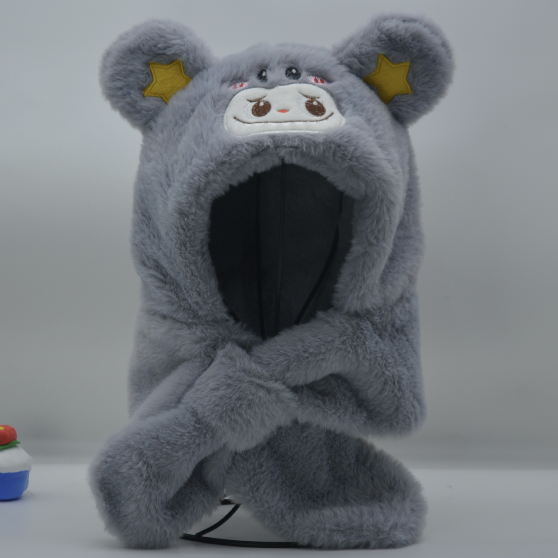 아기 모자와 스카프 통합 한국 스타일 따뜻한 남녀 어린이 가방 헤드 캡 귀여운 슈퍼 귀여운 어린이 봉제 귀 보호 캡 겨울