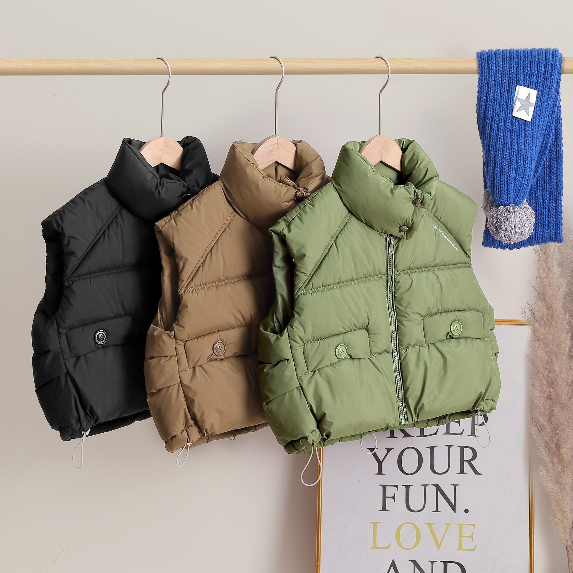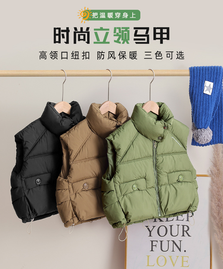 2025년 신상 스탠드 칼라 조끼 남녀 아동용 가을 겨울 스타일리시 조끼 한국 스타일 다용도 아우터 어린이용 보온 조끼스토어 가기