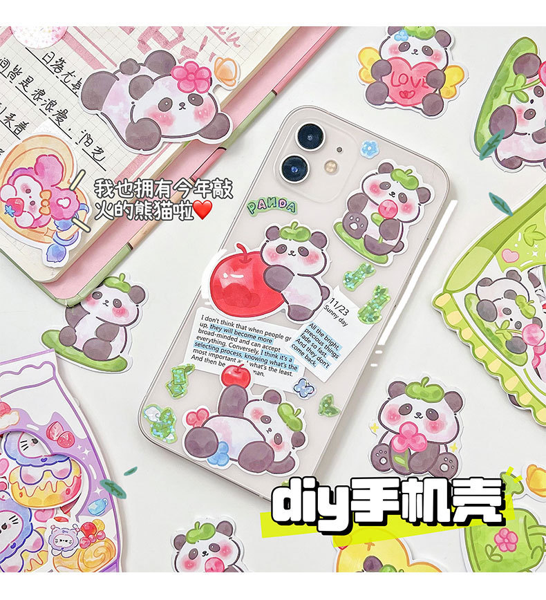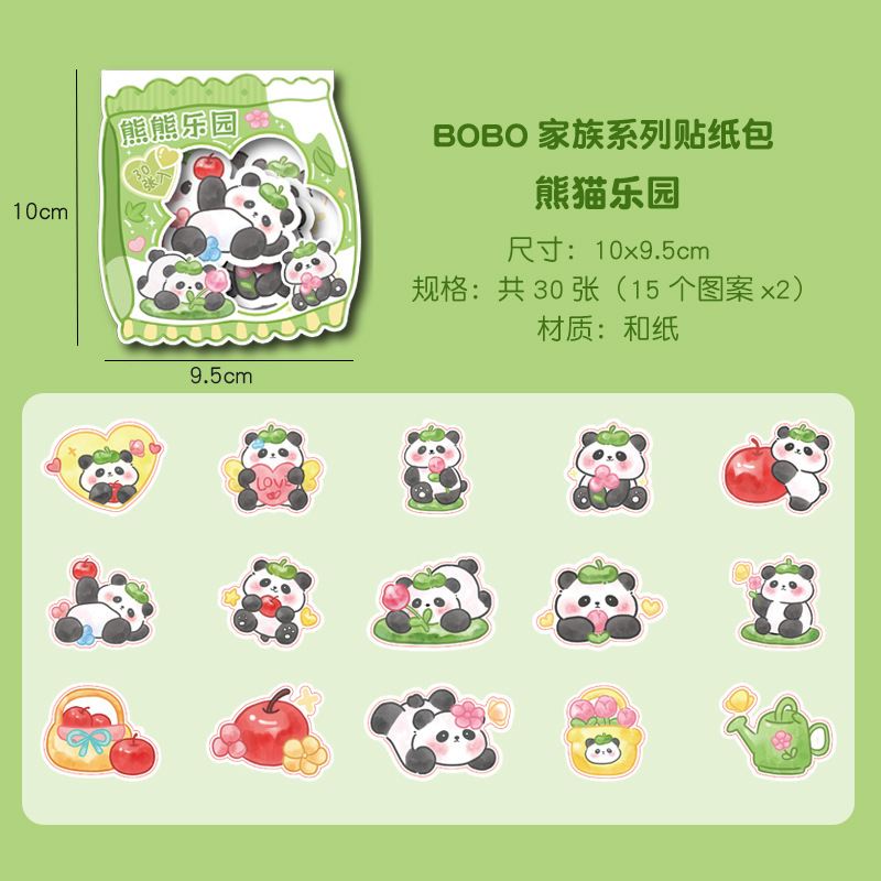 BOBO 가족 스티커 가방 만화 어린이 DIY goo 카드 스티커 귀여운 팬더 손 계정 스티커 휴대 전화 케이스 장식스토어 가기